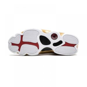 Celebrating the 20th anniversary of Michael Jordan’s final championship season with the Chicago Bulls, this colorway was released as part of the Defining Moments two-pack. The white leather upper is highlighted by metallic gold on the mudguard, heel and midsole. The hologram on the ankle sports the number ’98’—the year of Jordan’s last finals—while the words ‘THEY CAN’T WIN’ and ‘UNTIL WE QUIT’ appear on inside of the left and right tongues. A black and gold colorway makes up the other half of the collection.