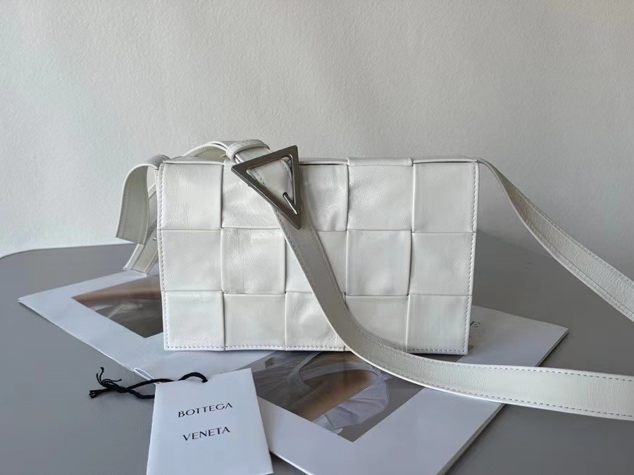 Bottega Veneta Cassett Bag In White Wrinkled Calfskin