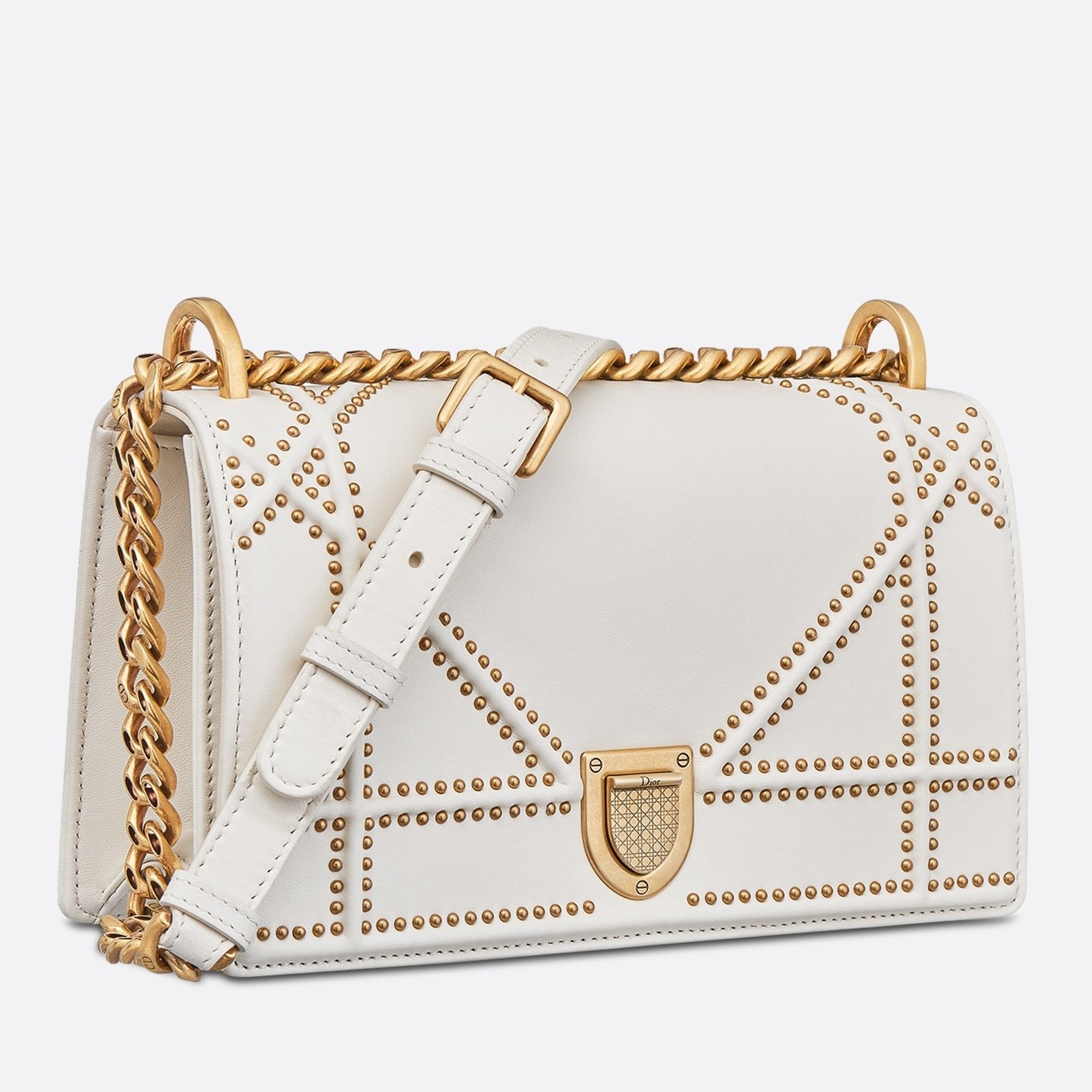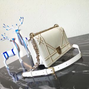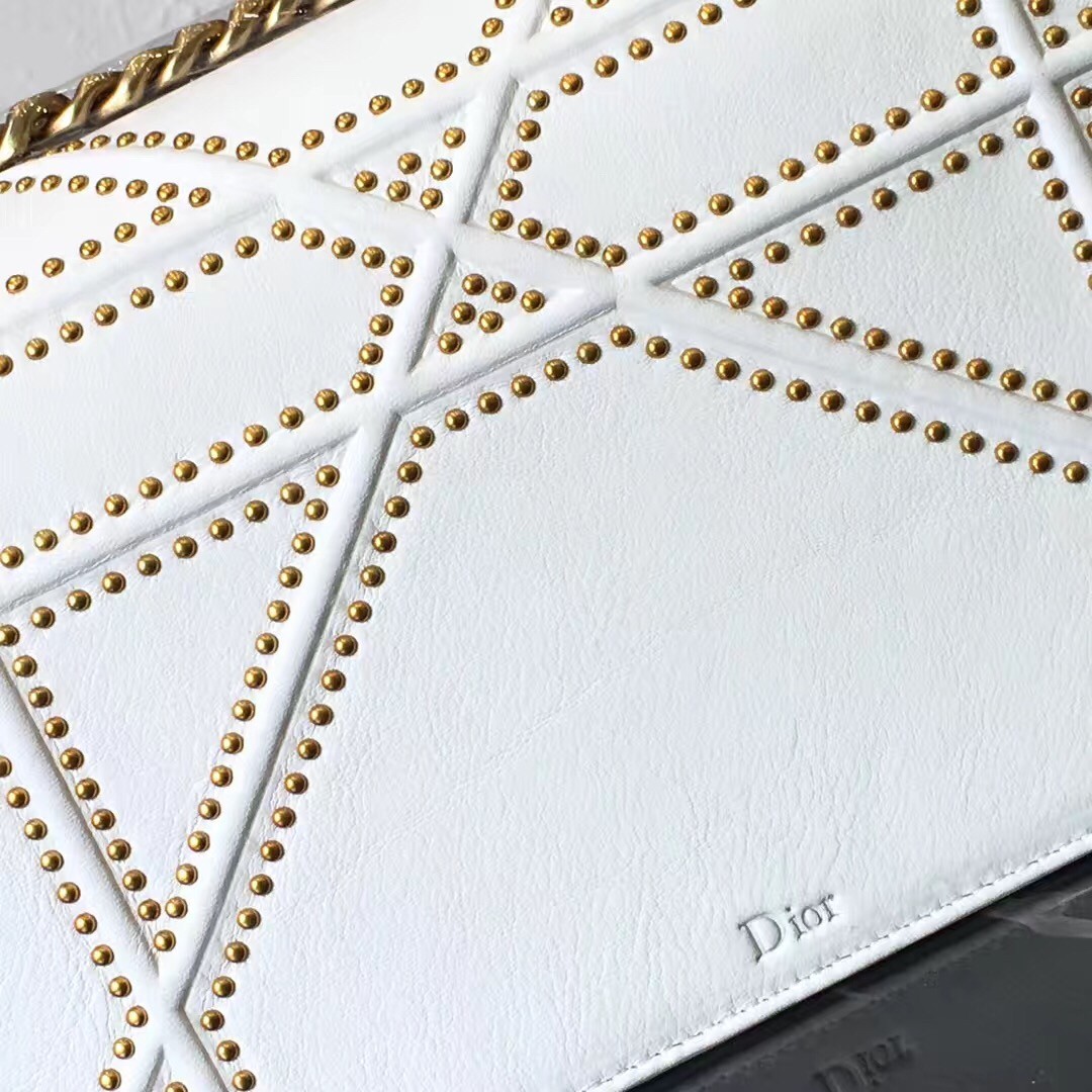 Dior Diorama Bag In White Studded Lambskin