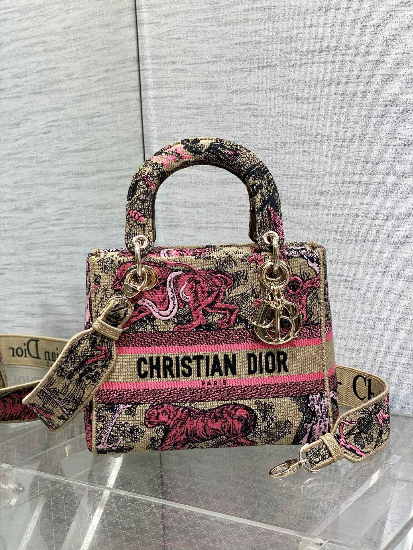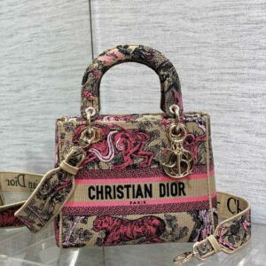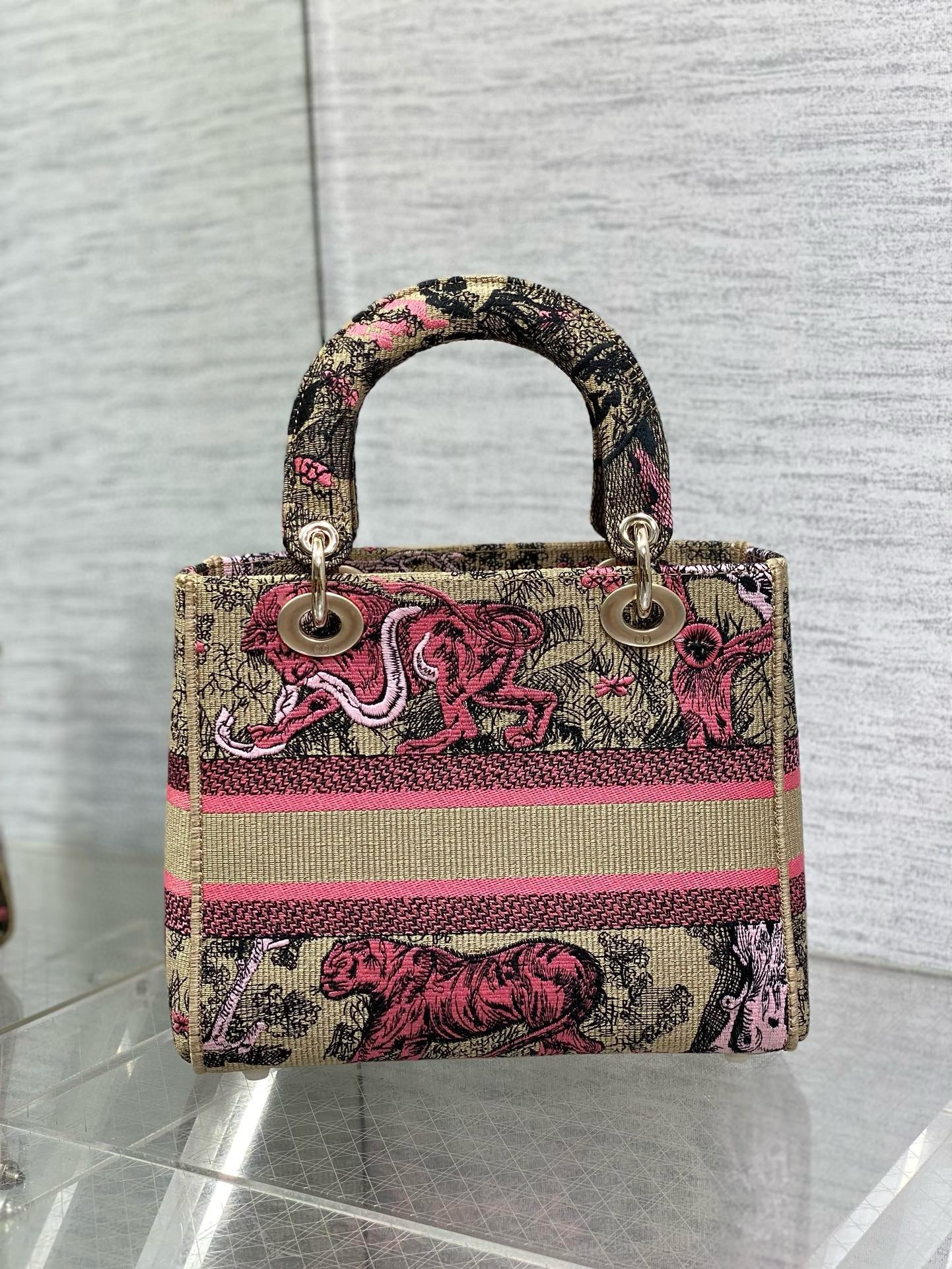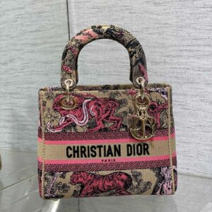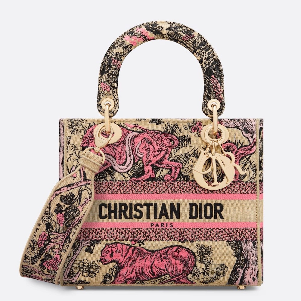 Dior Dioriviera Lady D-Lite Medium Bag in Raffia with Pink Toile de Jouy Sauvage Embroidery