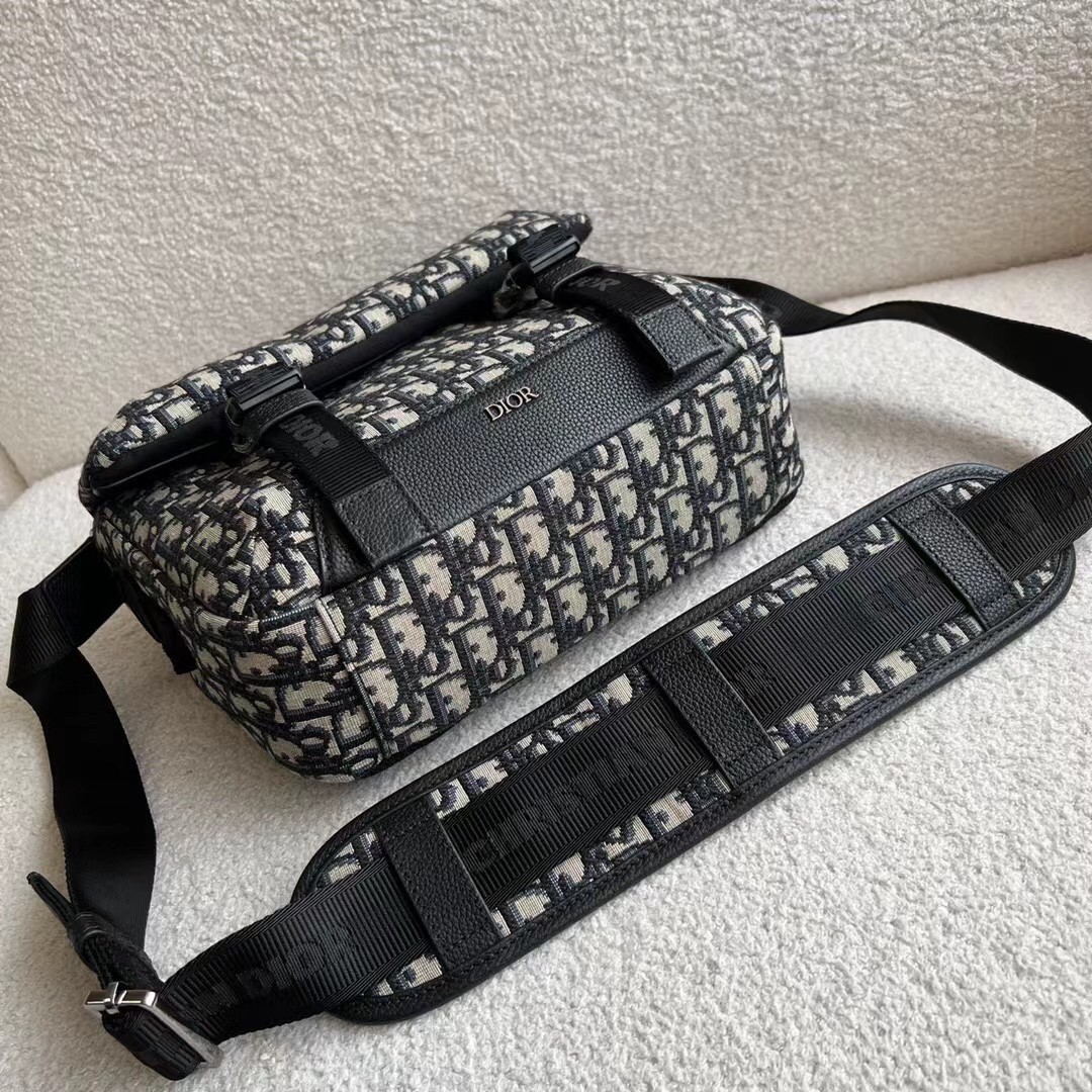 – Adjustable ‘Christian Dior’ nylon jacquard shoulder strap with padded leather insert