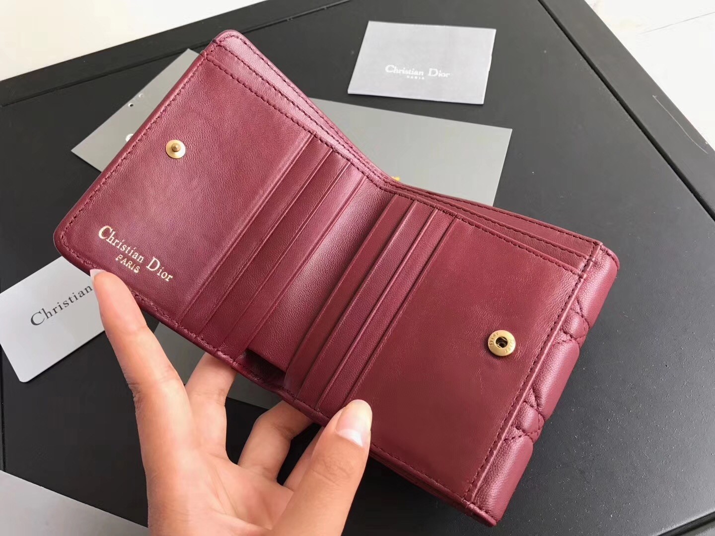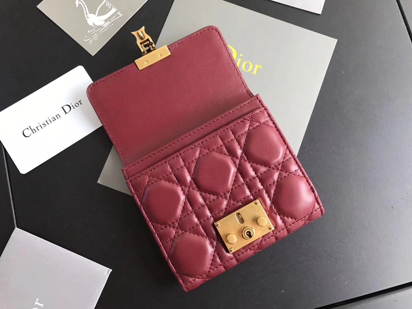 Dior French DiorAddict Wallet In Bordeaux Lambskin