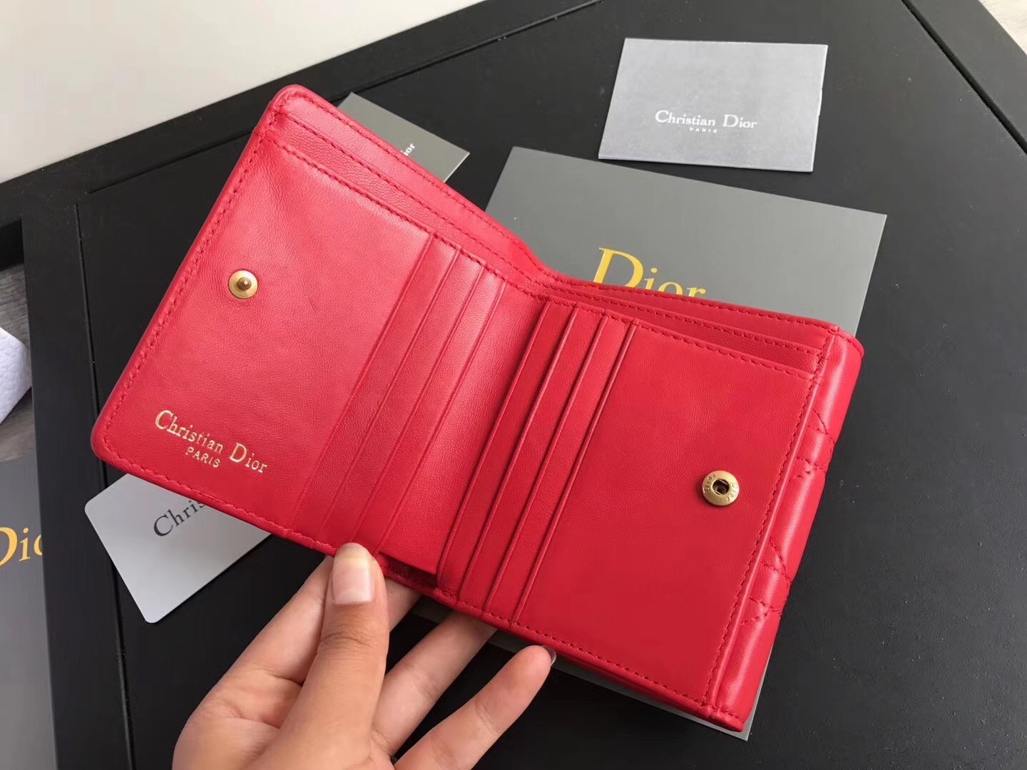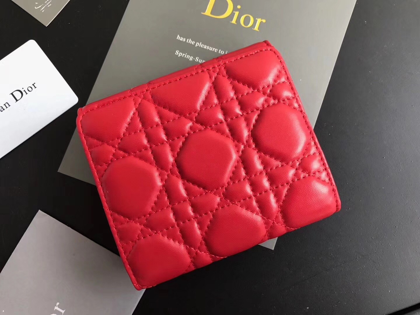 Dior French DiorAddict Wallet In Red Lambskin