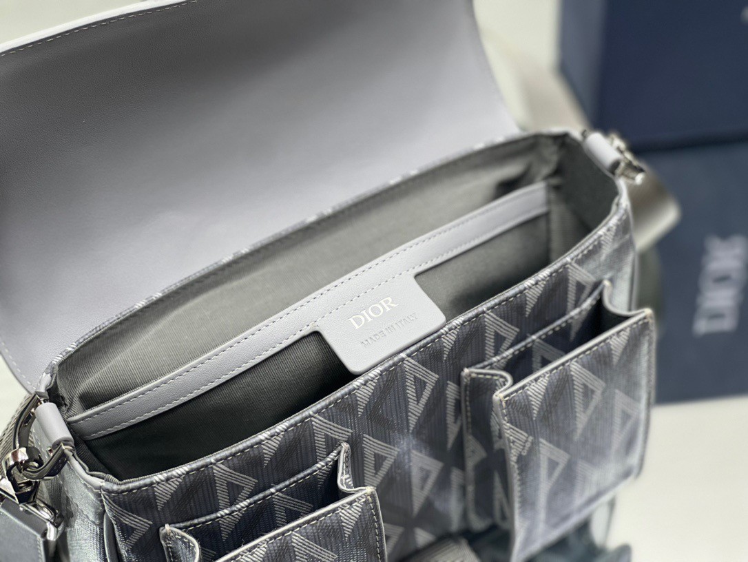 – Aluminum buckle with Christian Dior signature and CD initials on flap closure