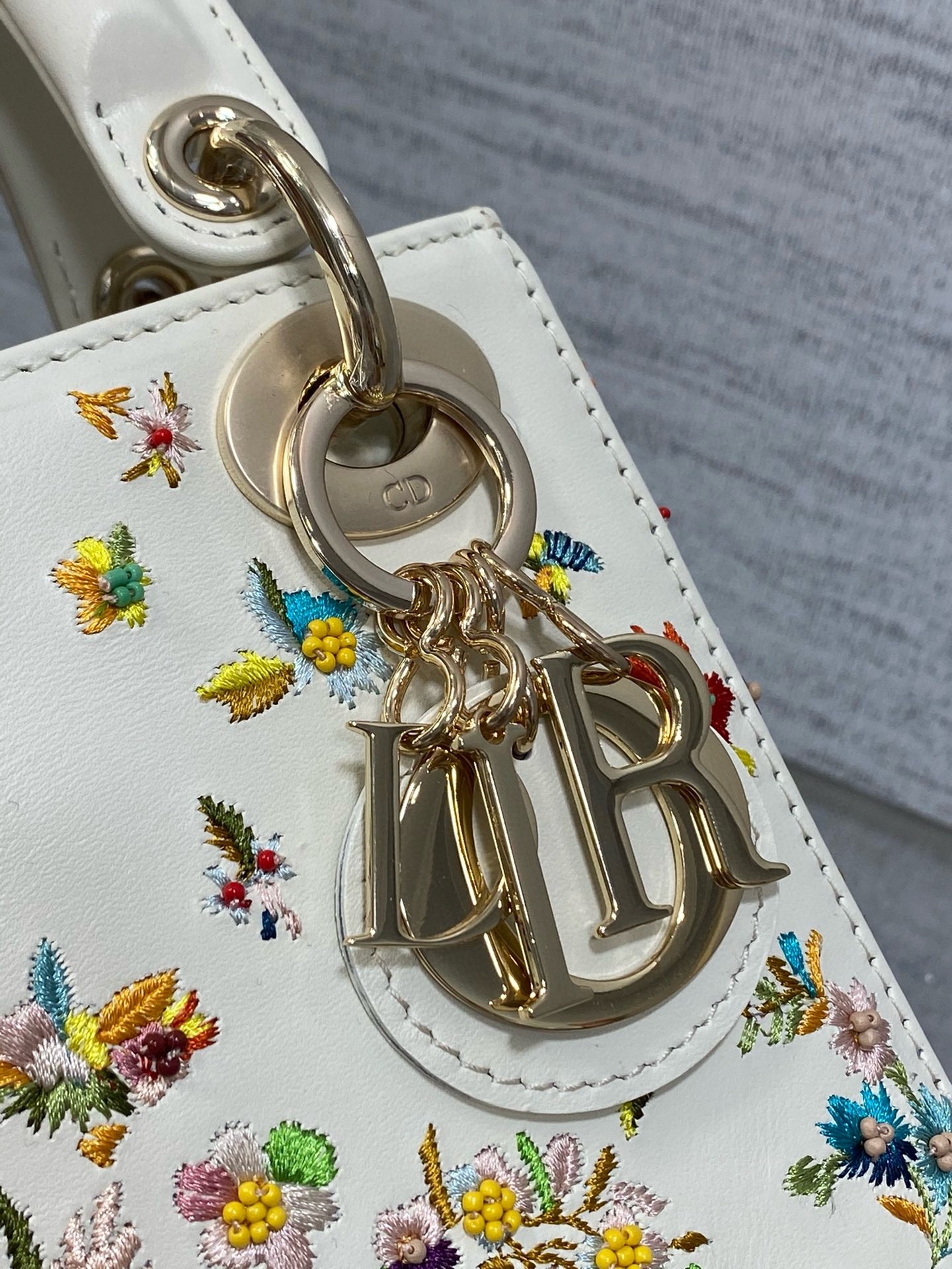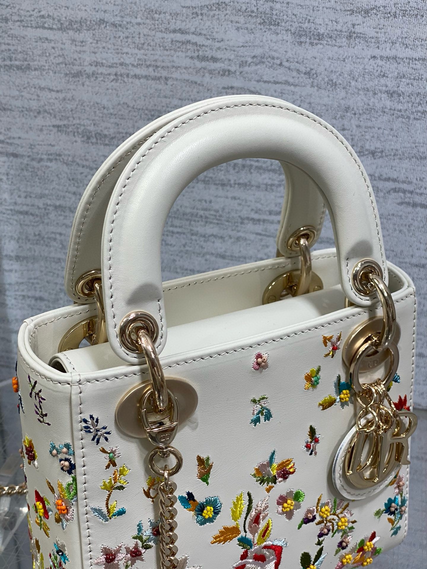 – Calfskin Embroidered with Multicolor Small Flowers