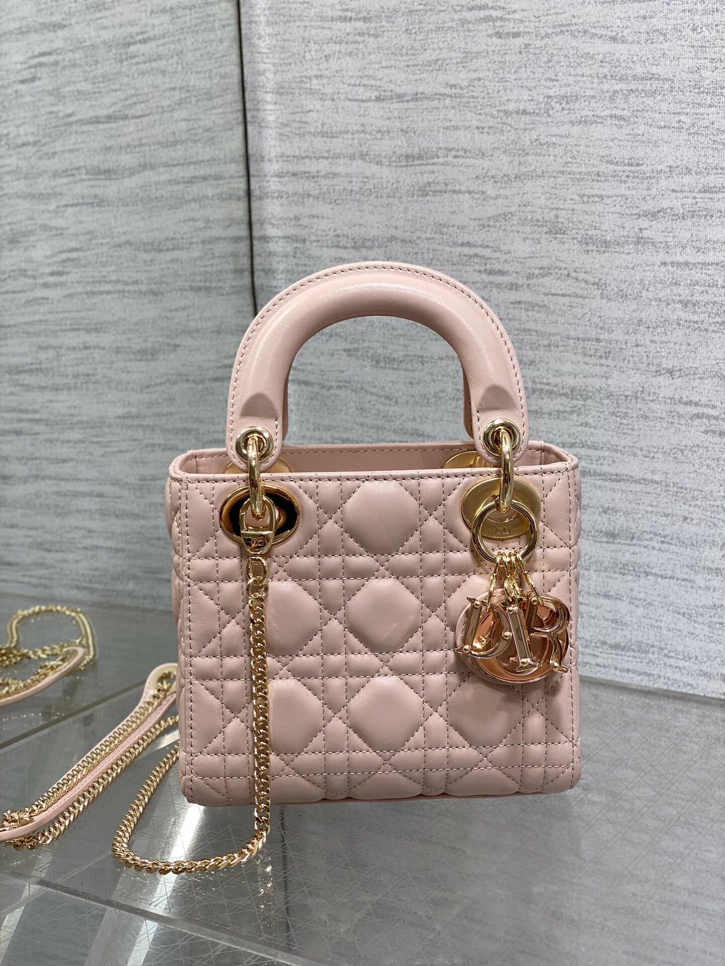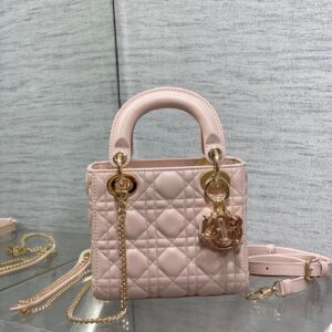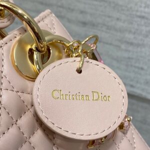 Dior Lady Dior Mini Bag with Chain in Pink Lambskin with Resin Charms