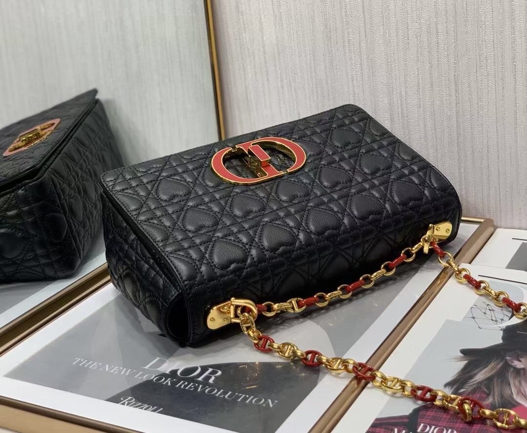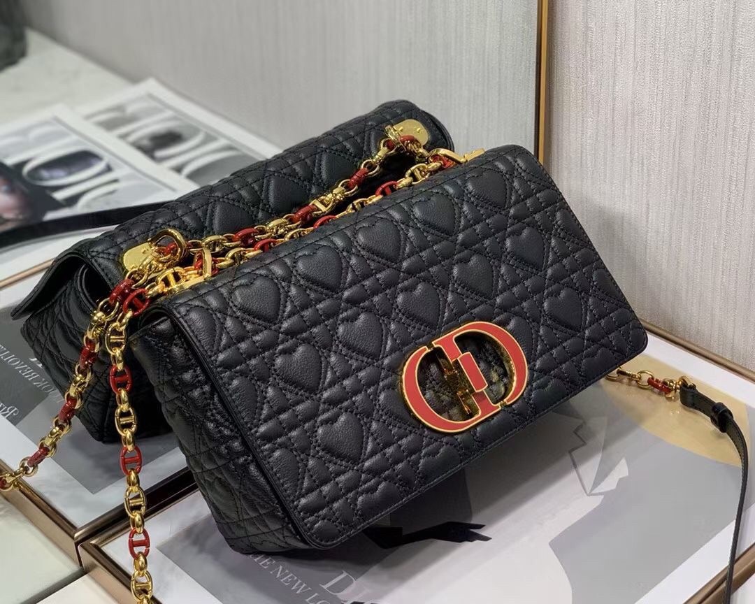 Dior Medium Dioramour Caro Black Bag with Heart Motif