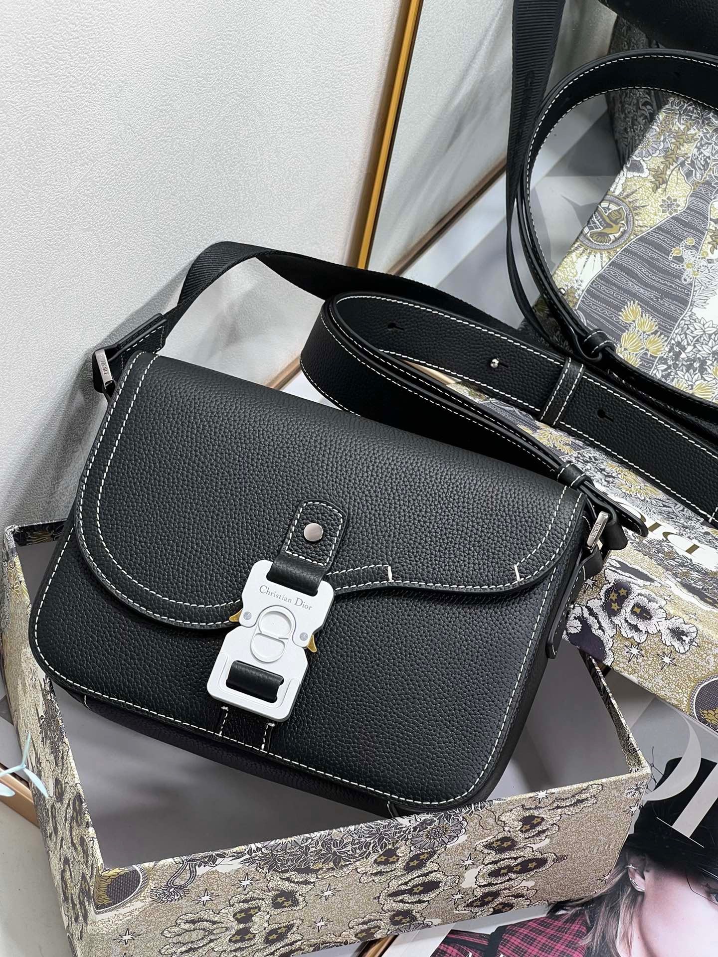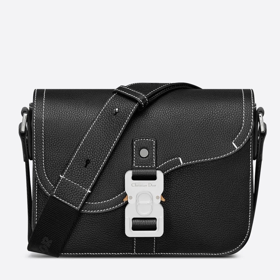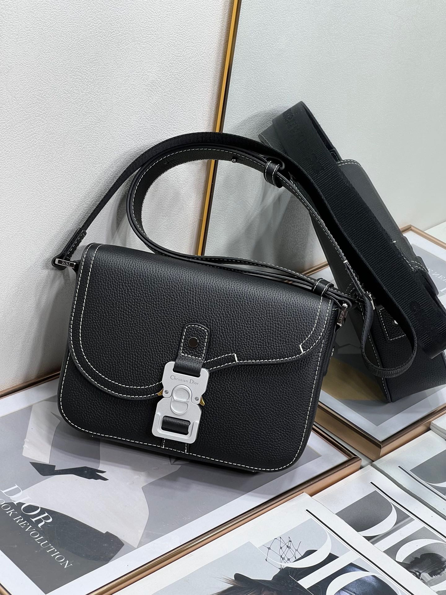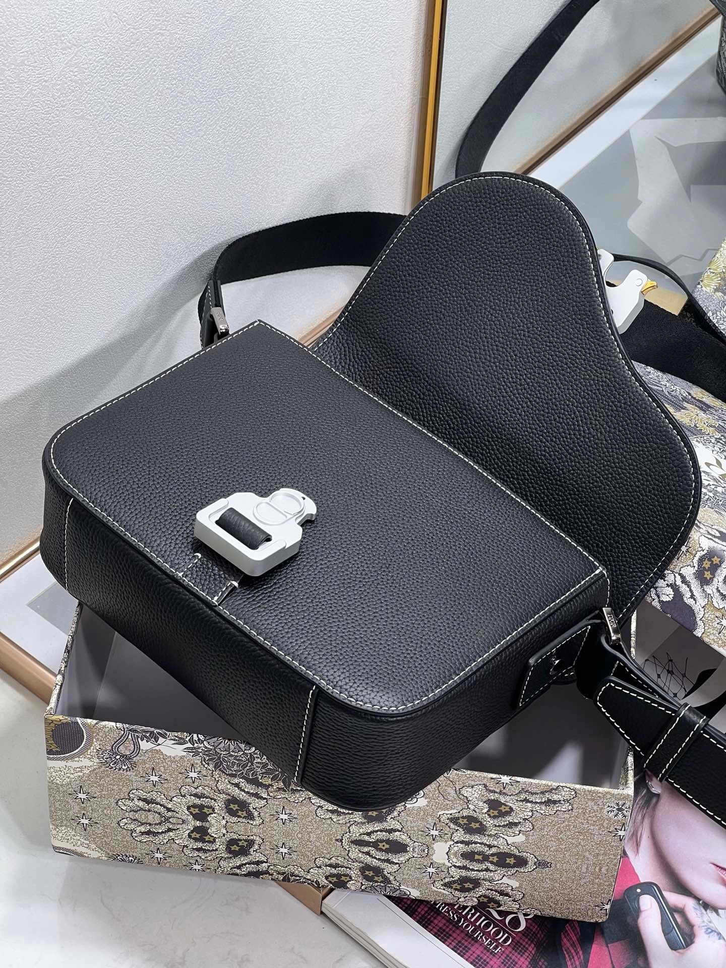 Dior Men’s Mini Saddle Messenger Bag In Black Grained Calfskin