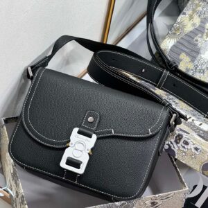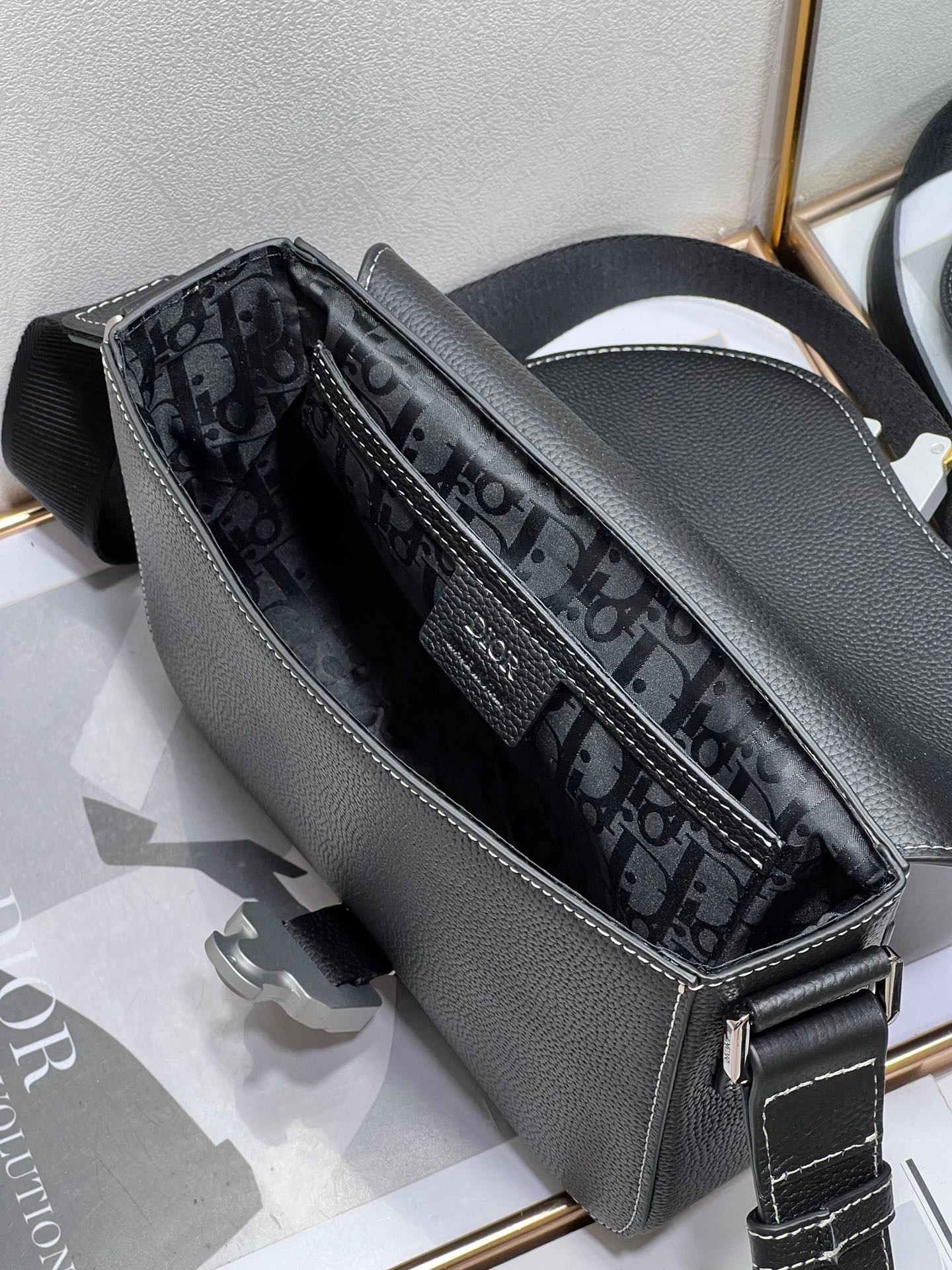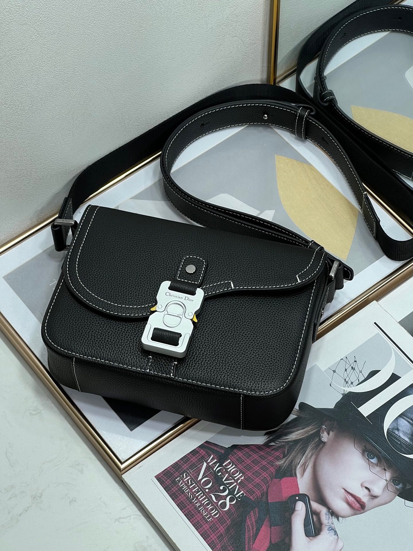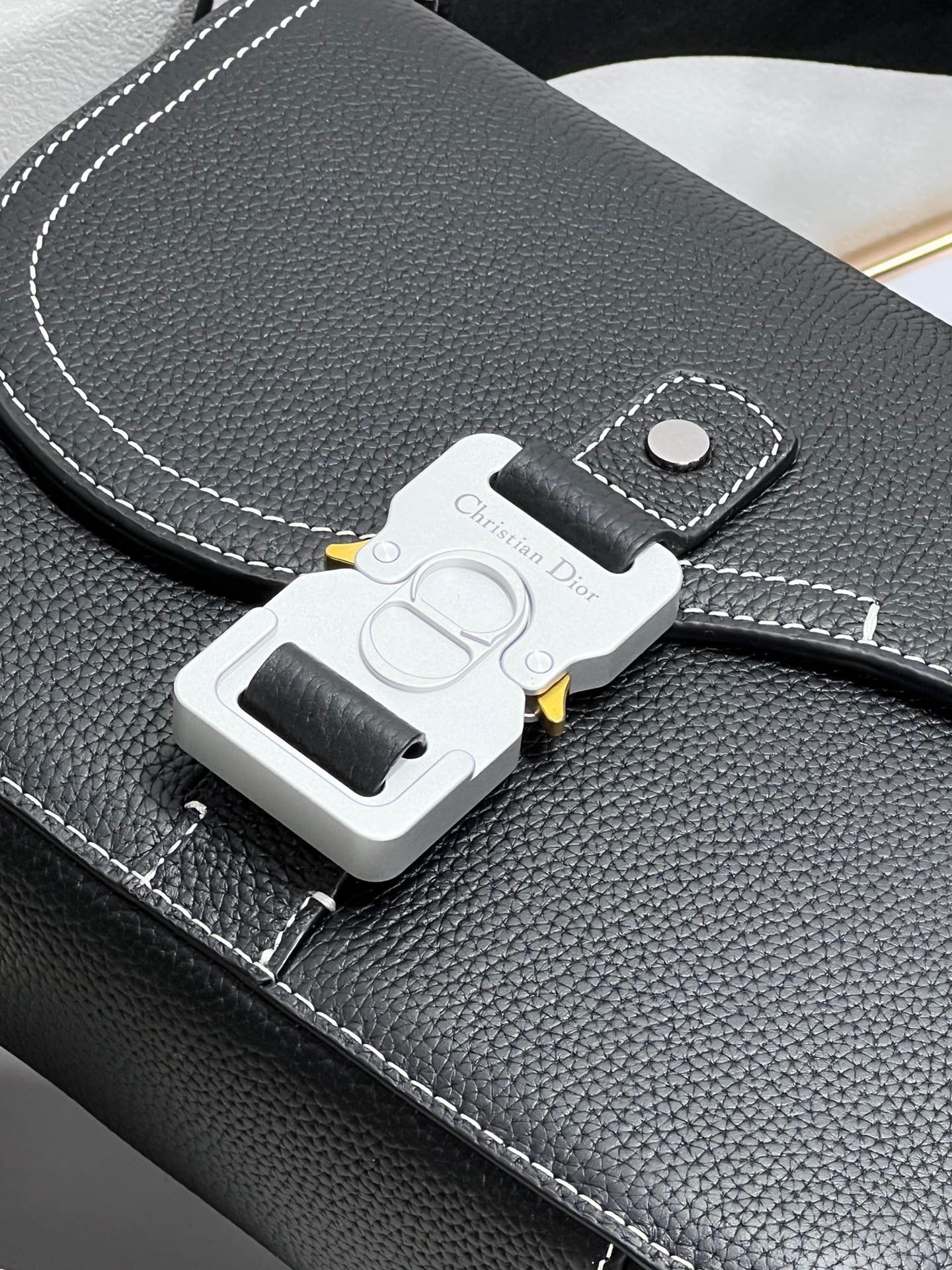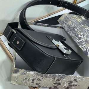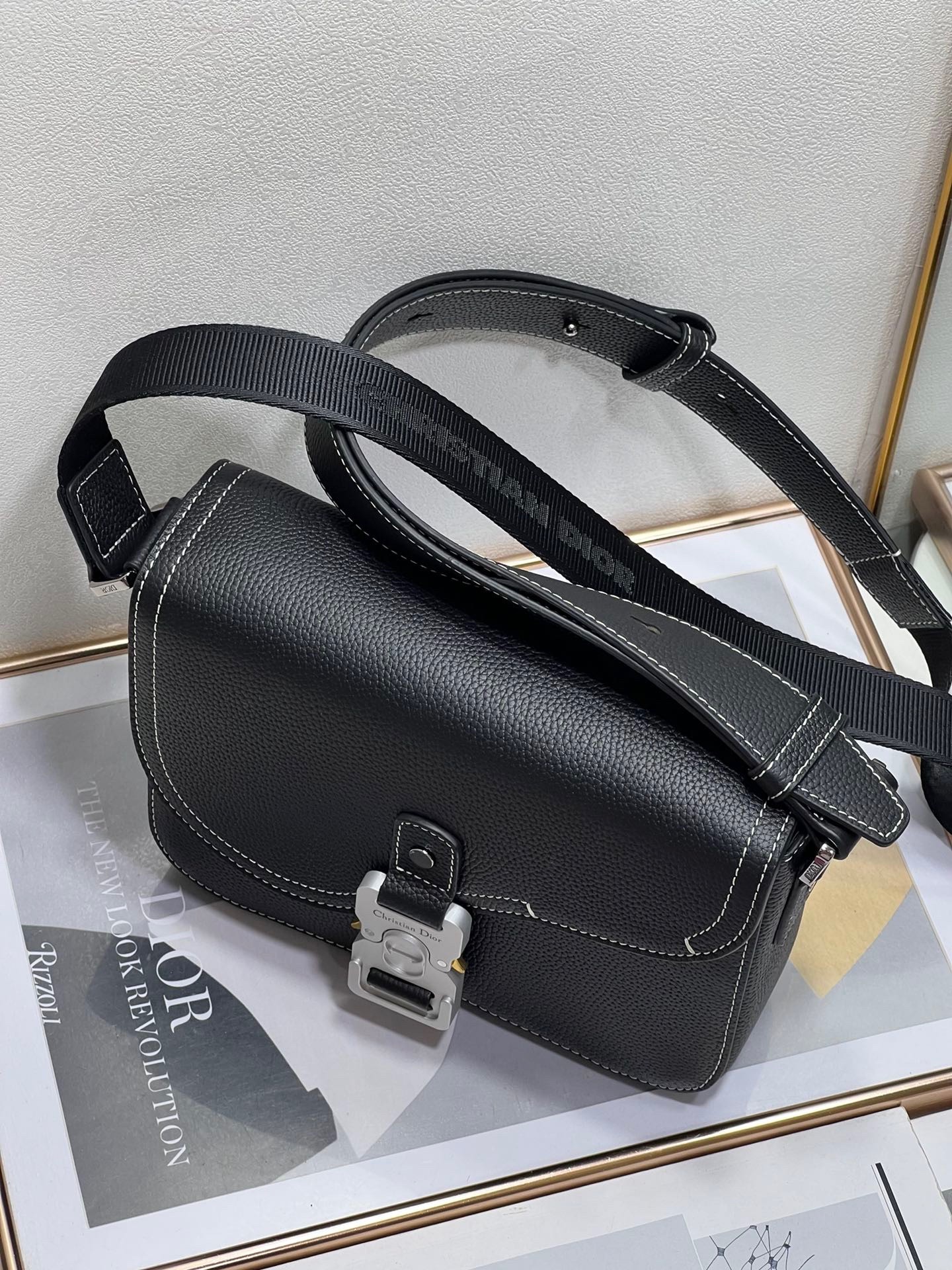 Dior Men’s Mini Saddle Messenger Bag In Black Grained Calfskin