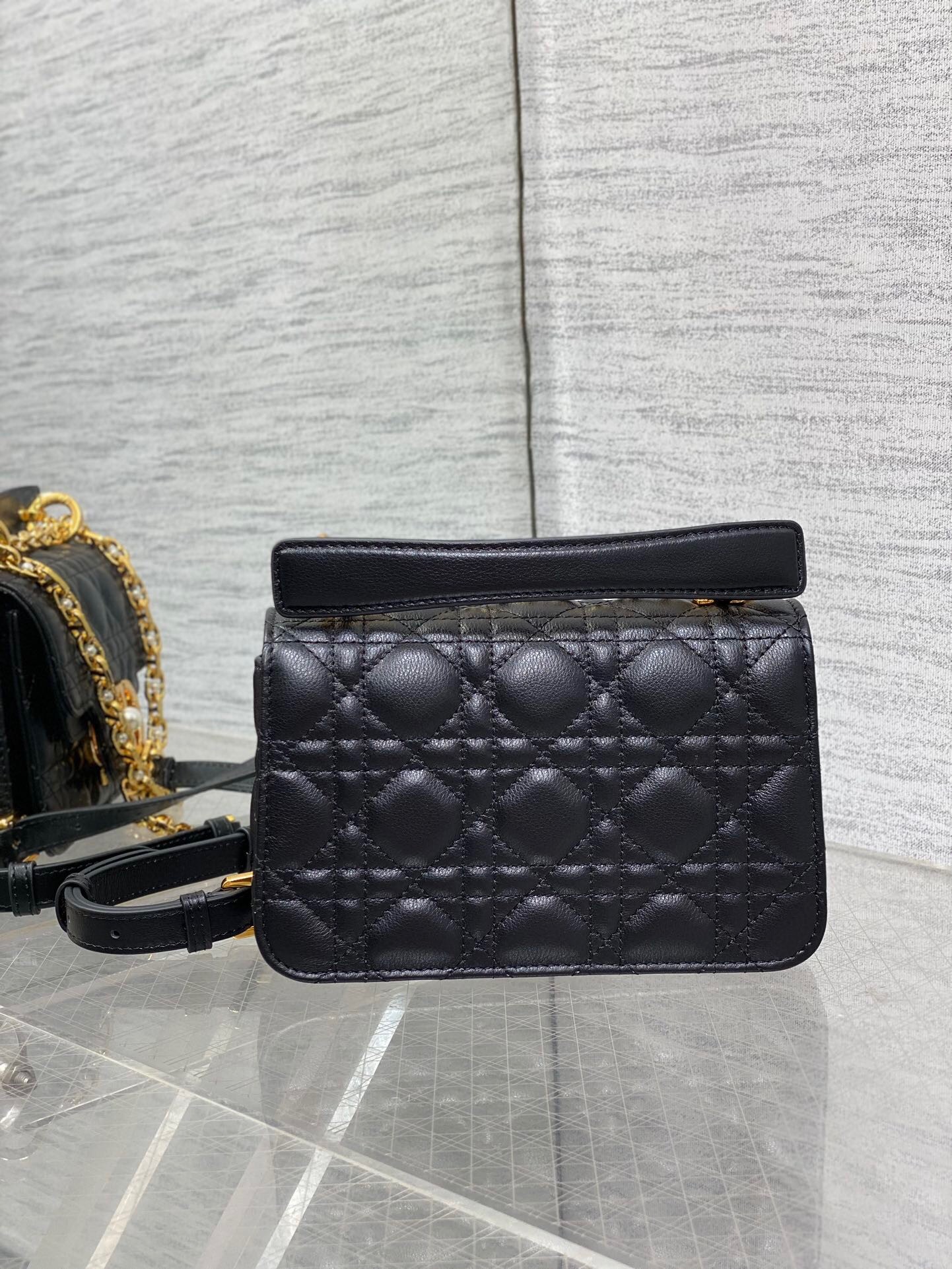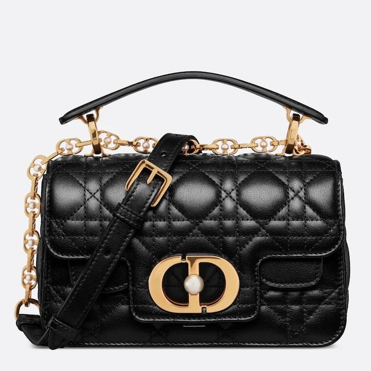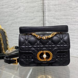 Dior Mini Jolie Top Handle Bag in Black Cannage Calfskin