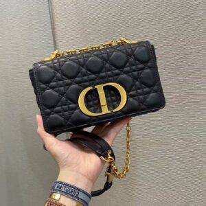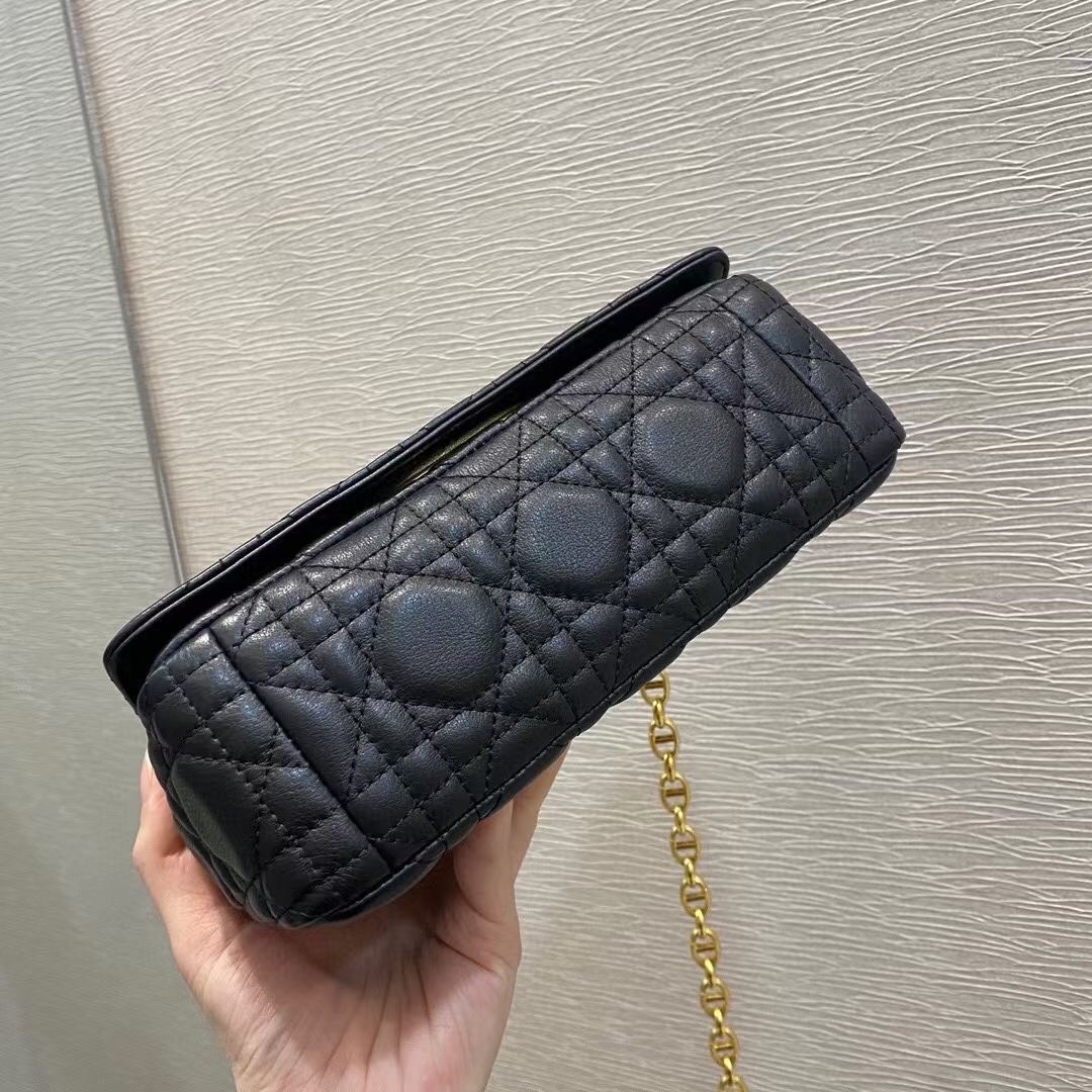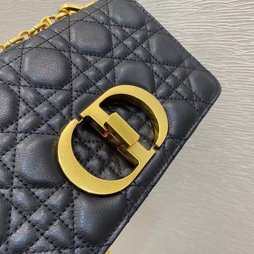 Dior Small Caro Bag In Black Cannage Calfskin