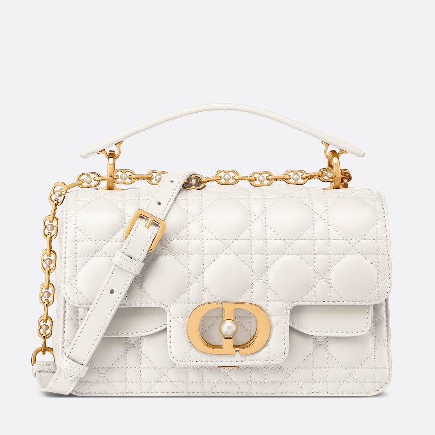 Dior Small Jolie Top Handle Bag in White Cannage Calfskin