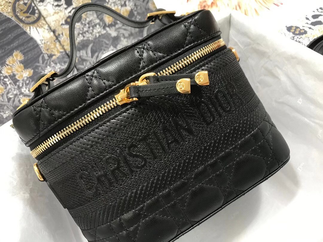 Dior Small Travel Vanity Case In Black Cannage Lambskin