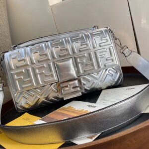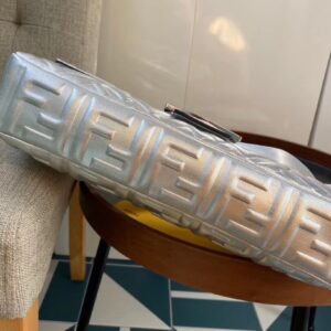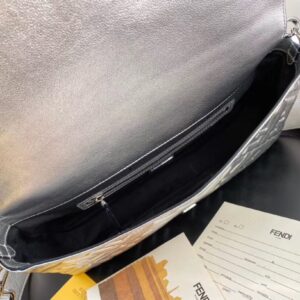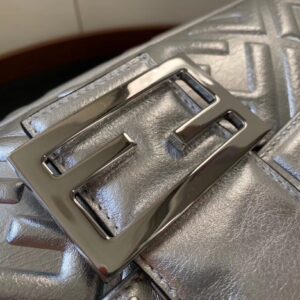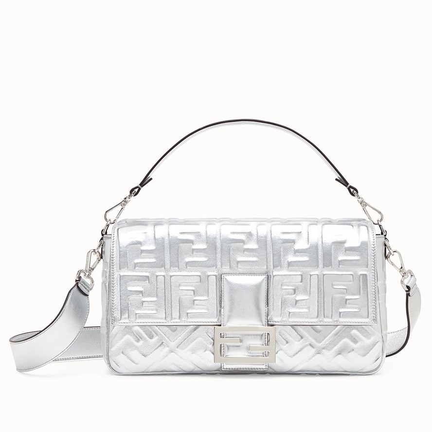 Fendi Baguette Large Bag In Silver Lambskin With FF Motif