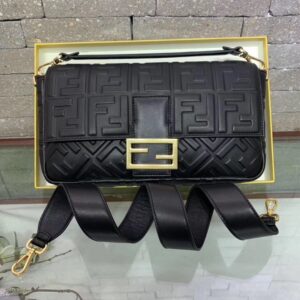Fendi Black FF Motif Large Baguette Bag