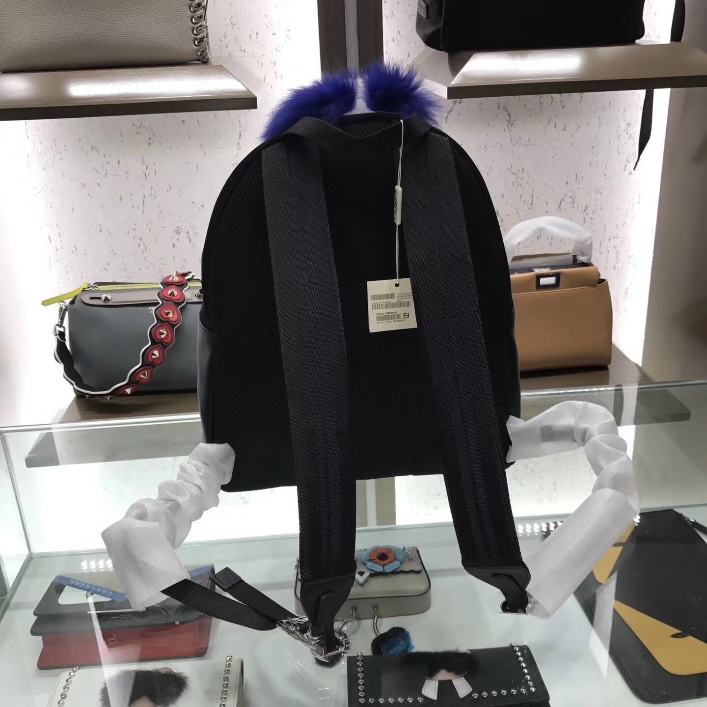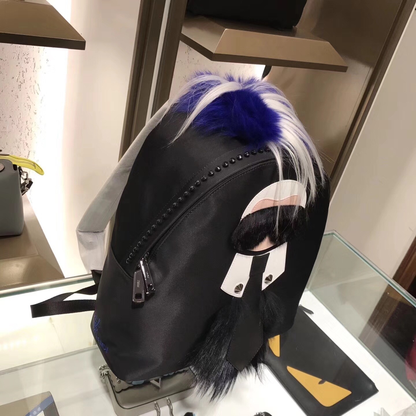 Fendi Black Fur Depict Karlito Appliques Backpack