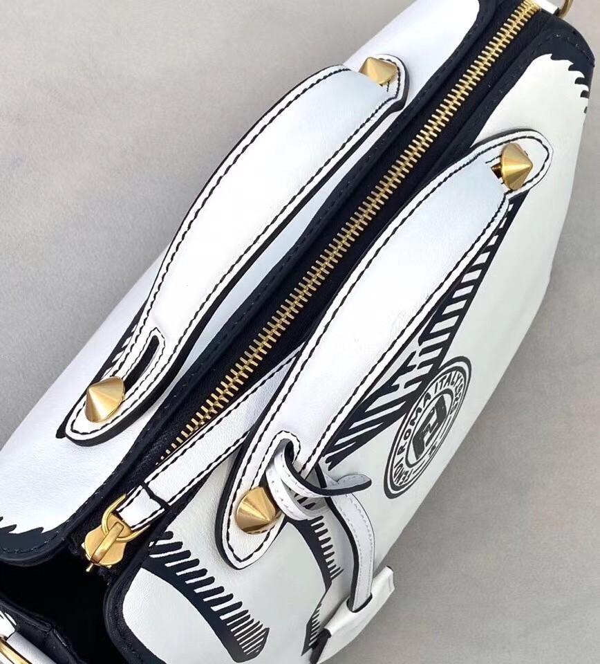 Fendi By The Way Medium Bag In White Printed Leather