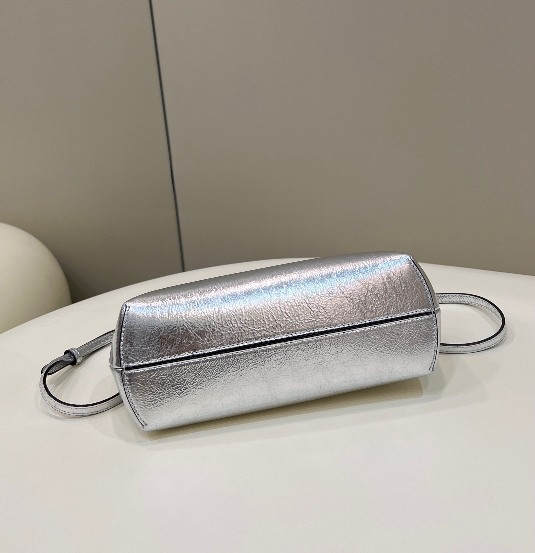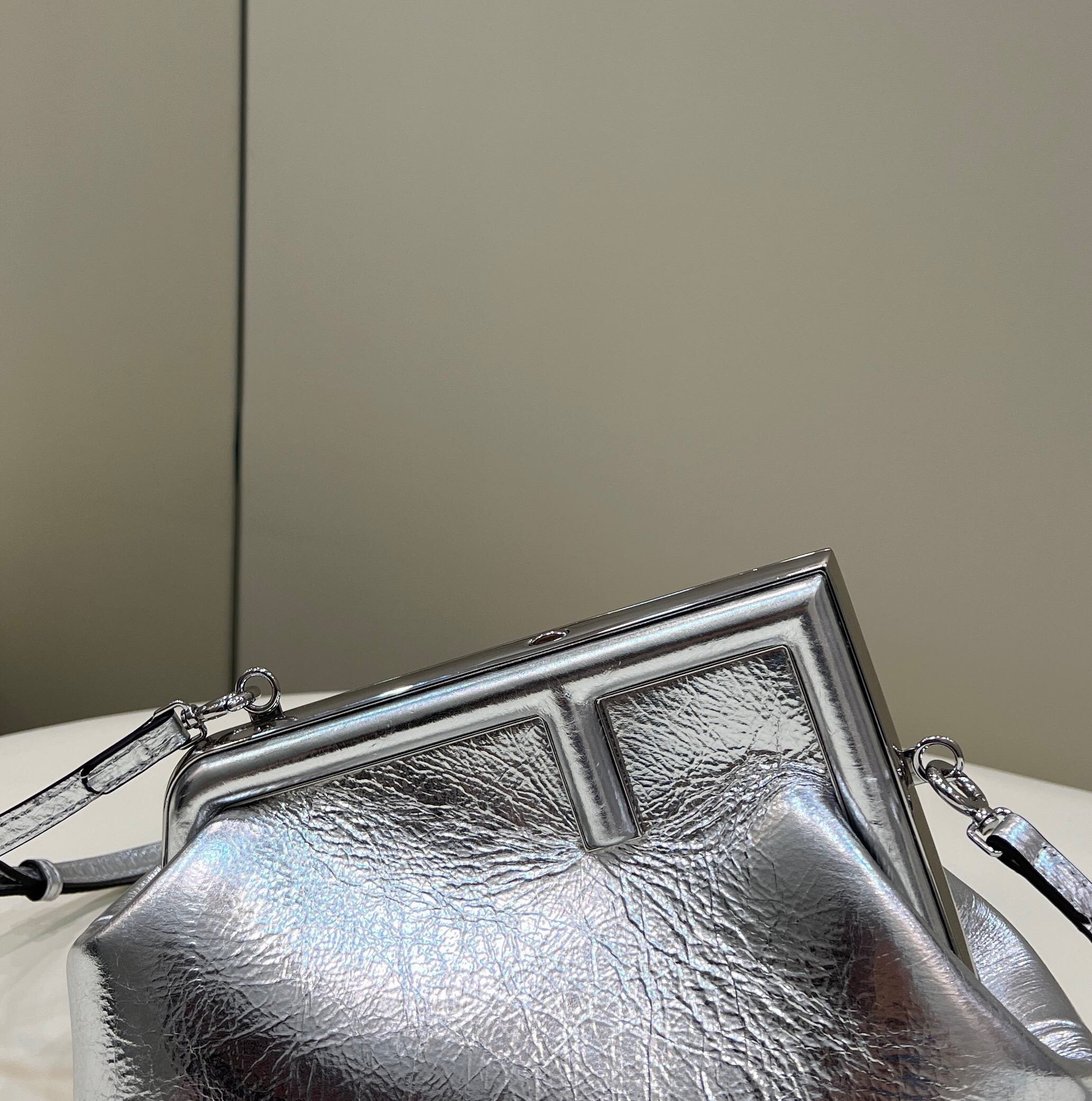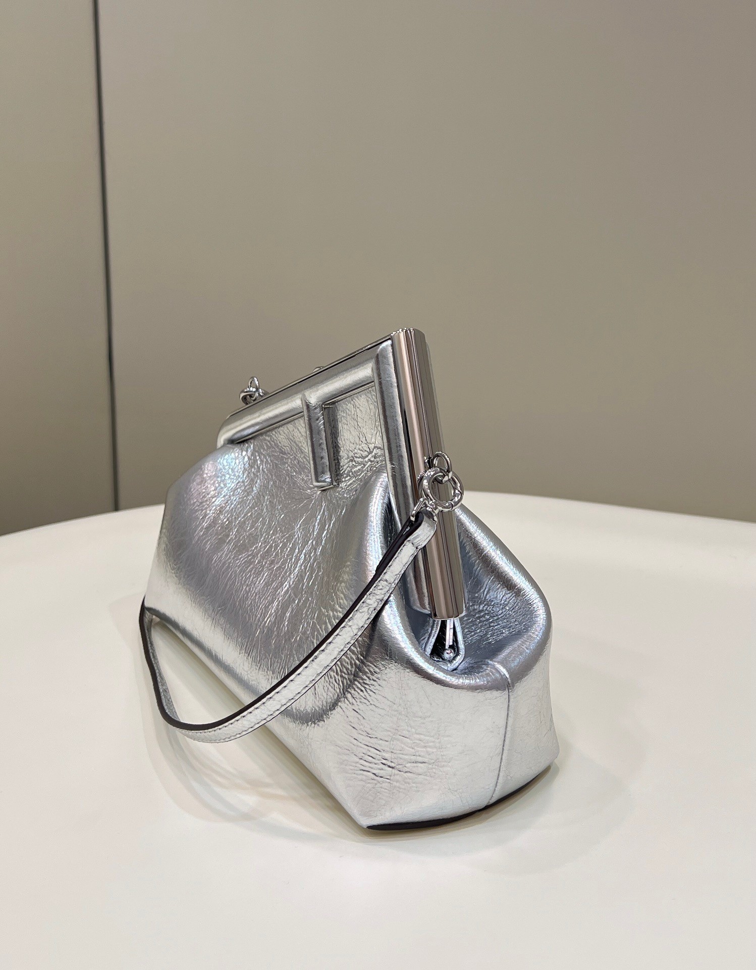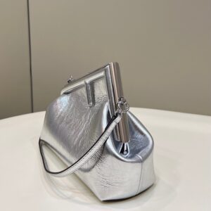 – Oversized metal F clasp bound with tone on tone nappa leather