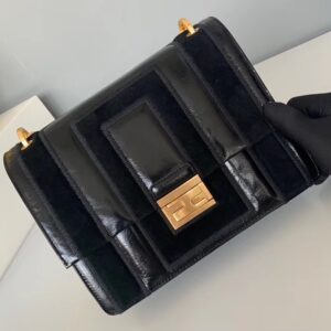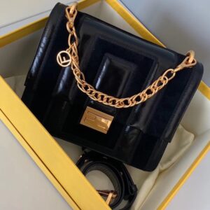 – Geometric flap with embossed corners and an iconic FF press-stud fastening