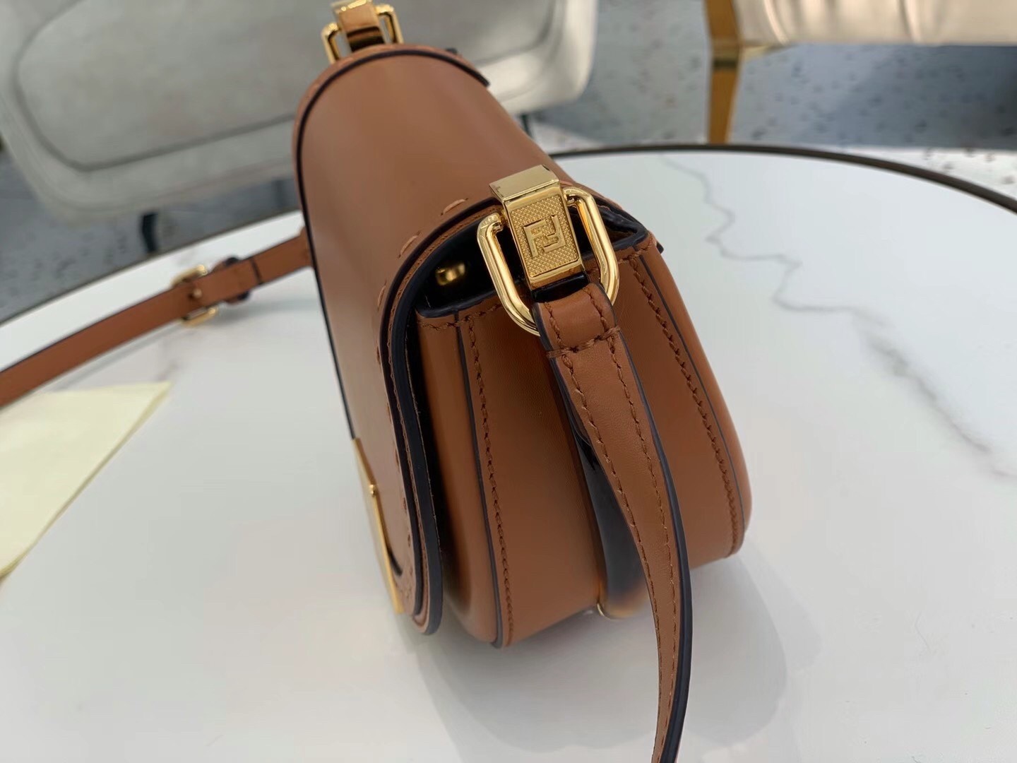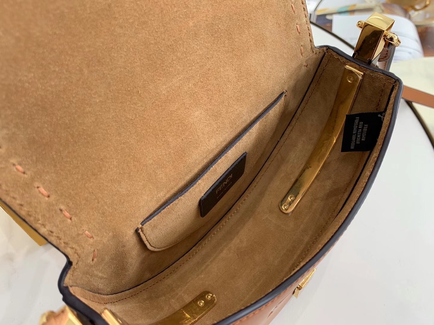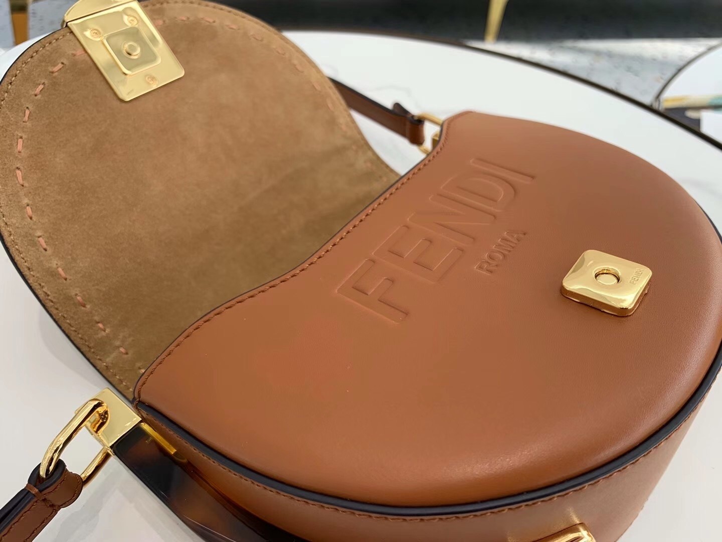 – Hot-pressed Fendi Roma under the flap