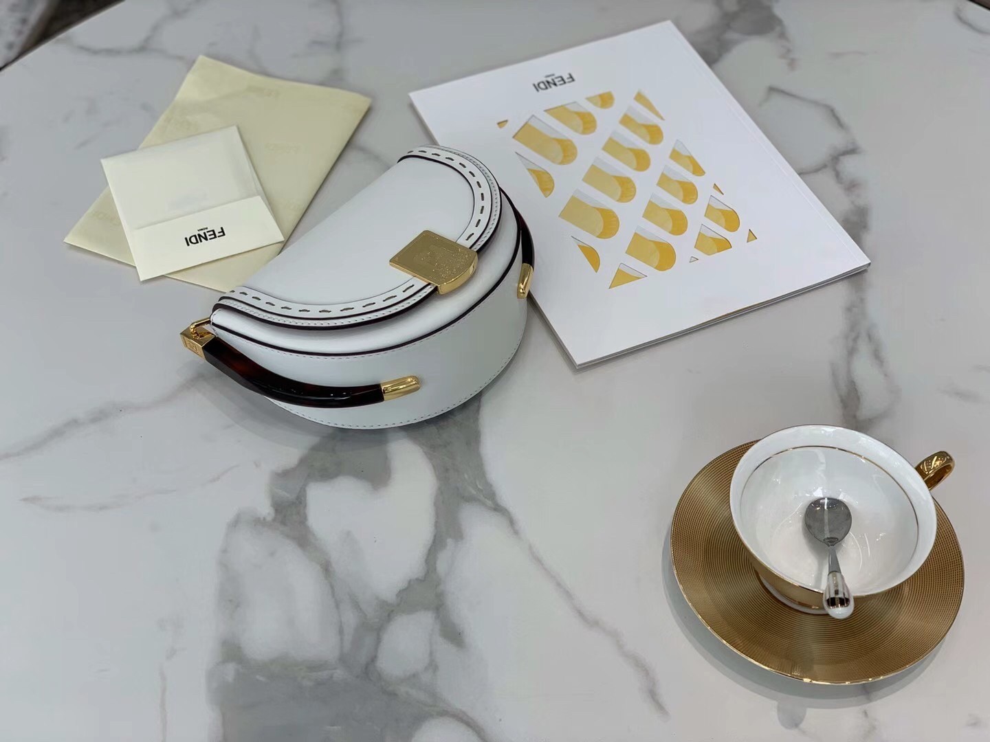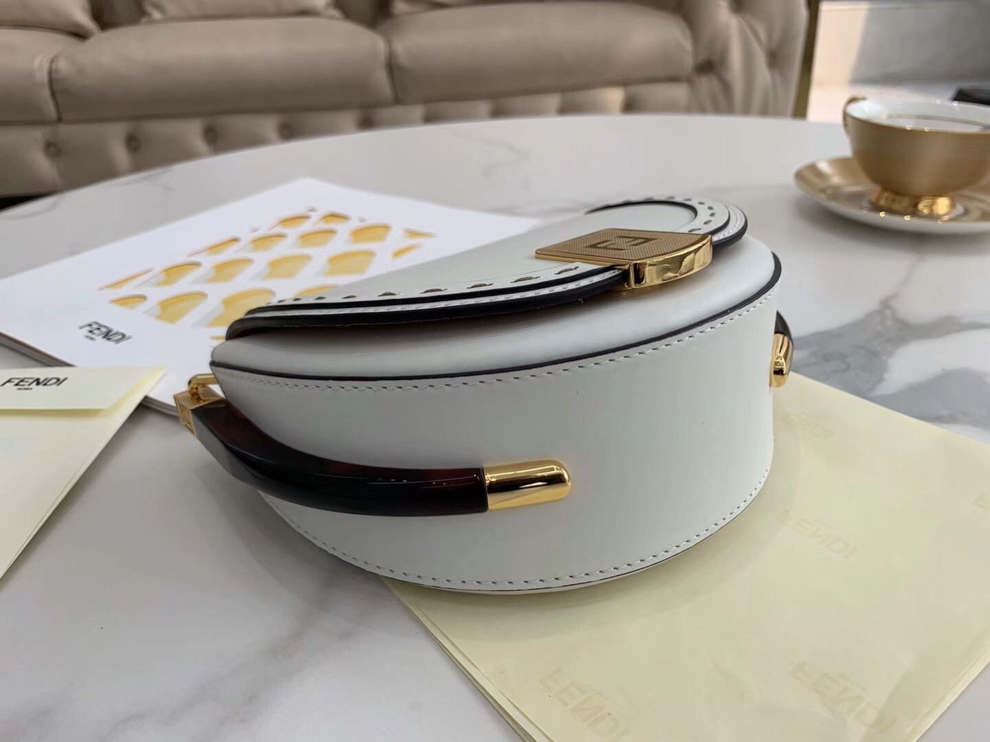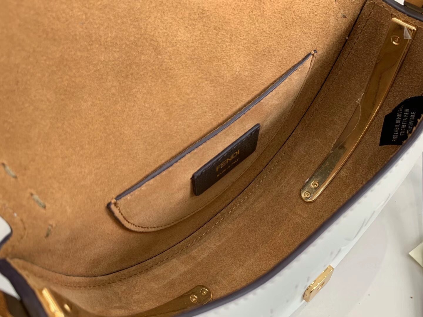– Hot-pressed Fendi Roma under the flap