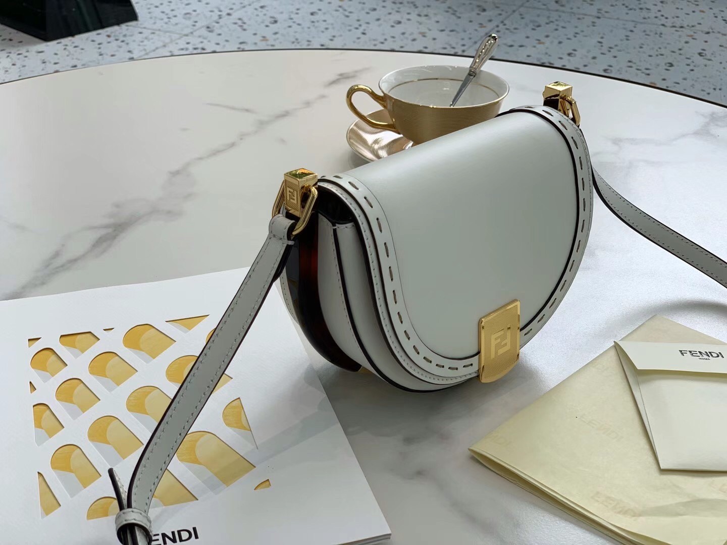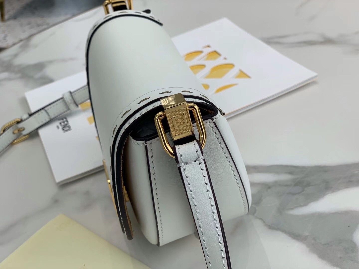 Fendi Moonlight Saddle Bag In White Calfskin