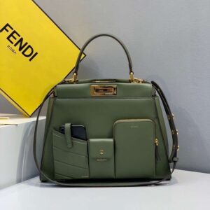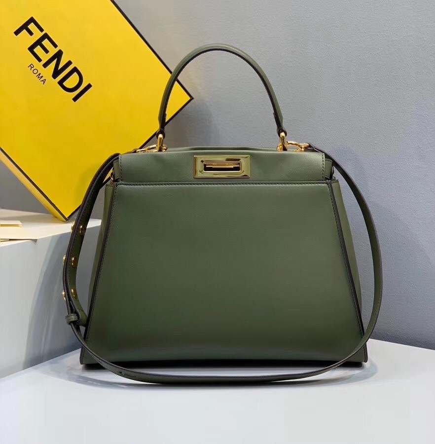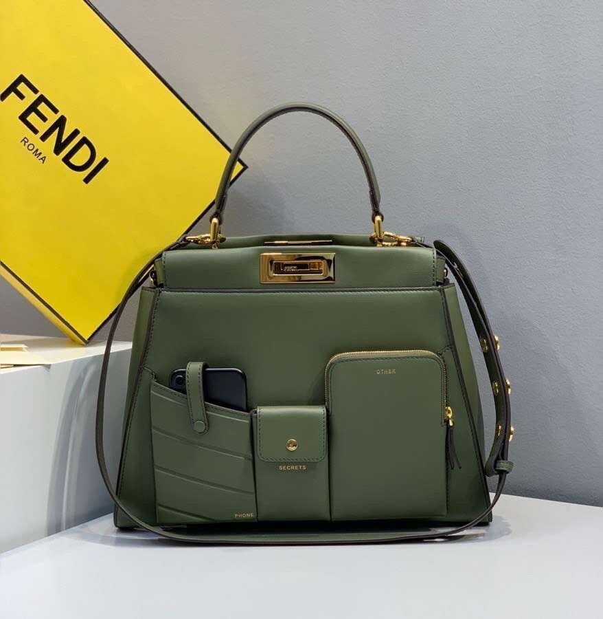 Fendi Peekaboo Pocket Medium Bag In Green Calfskin