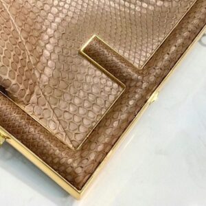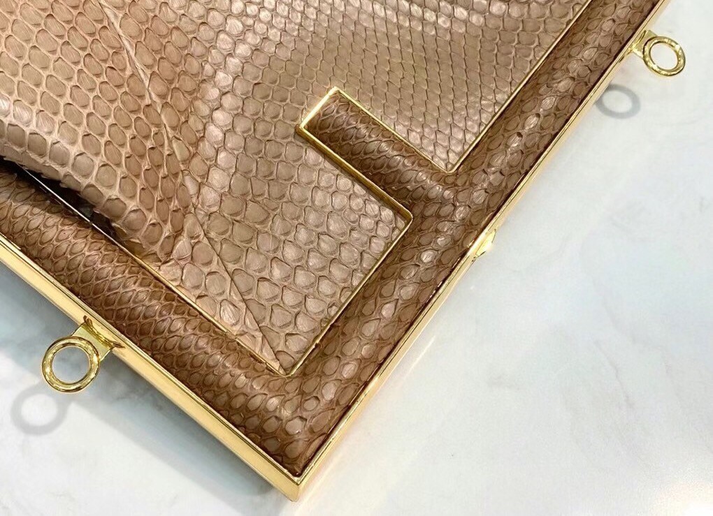 – Oversized metal F clasp bound with tone on tone nappa leather
