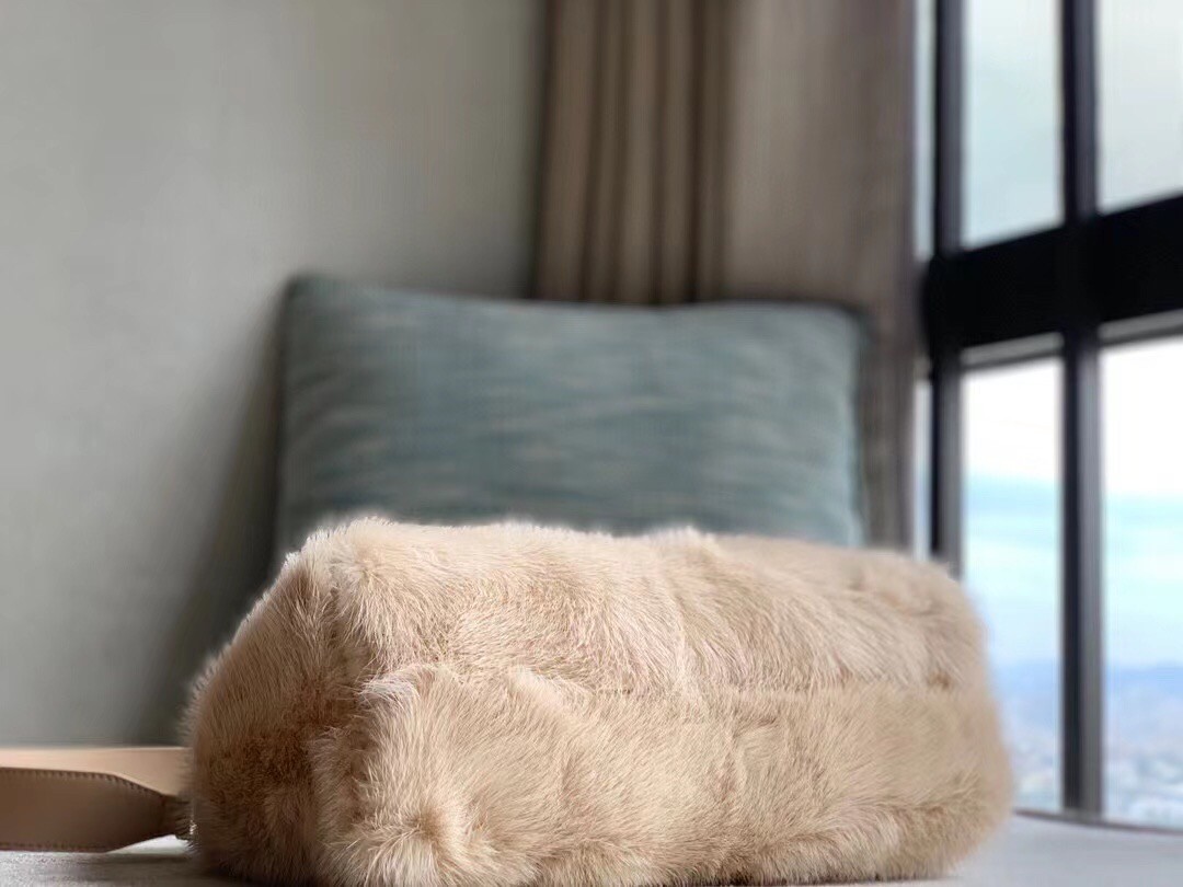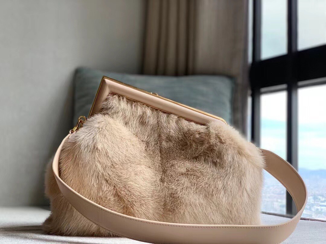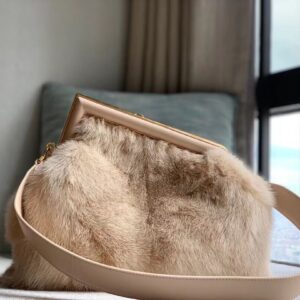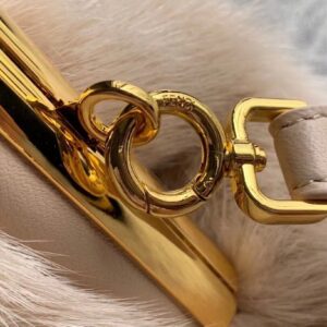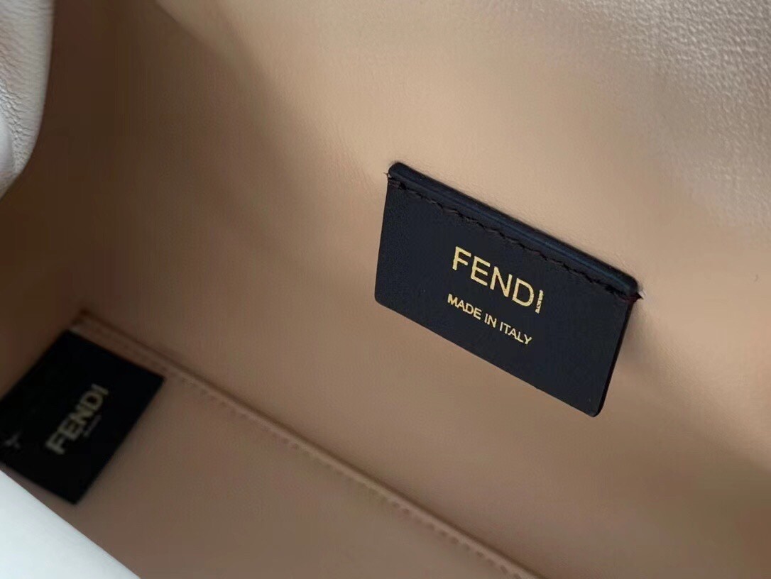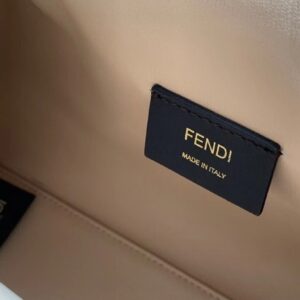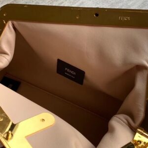 – Oversized metal F clasp bound with tone on tone nappa leather