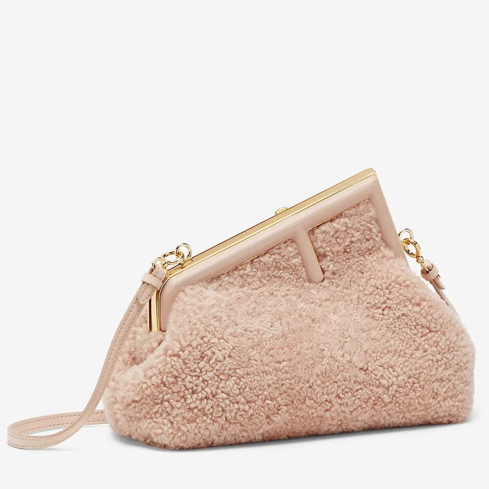 – Oversized metal F clasp bound with tone on tone nappa leather