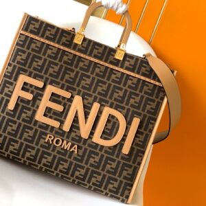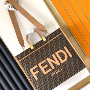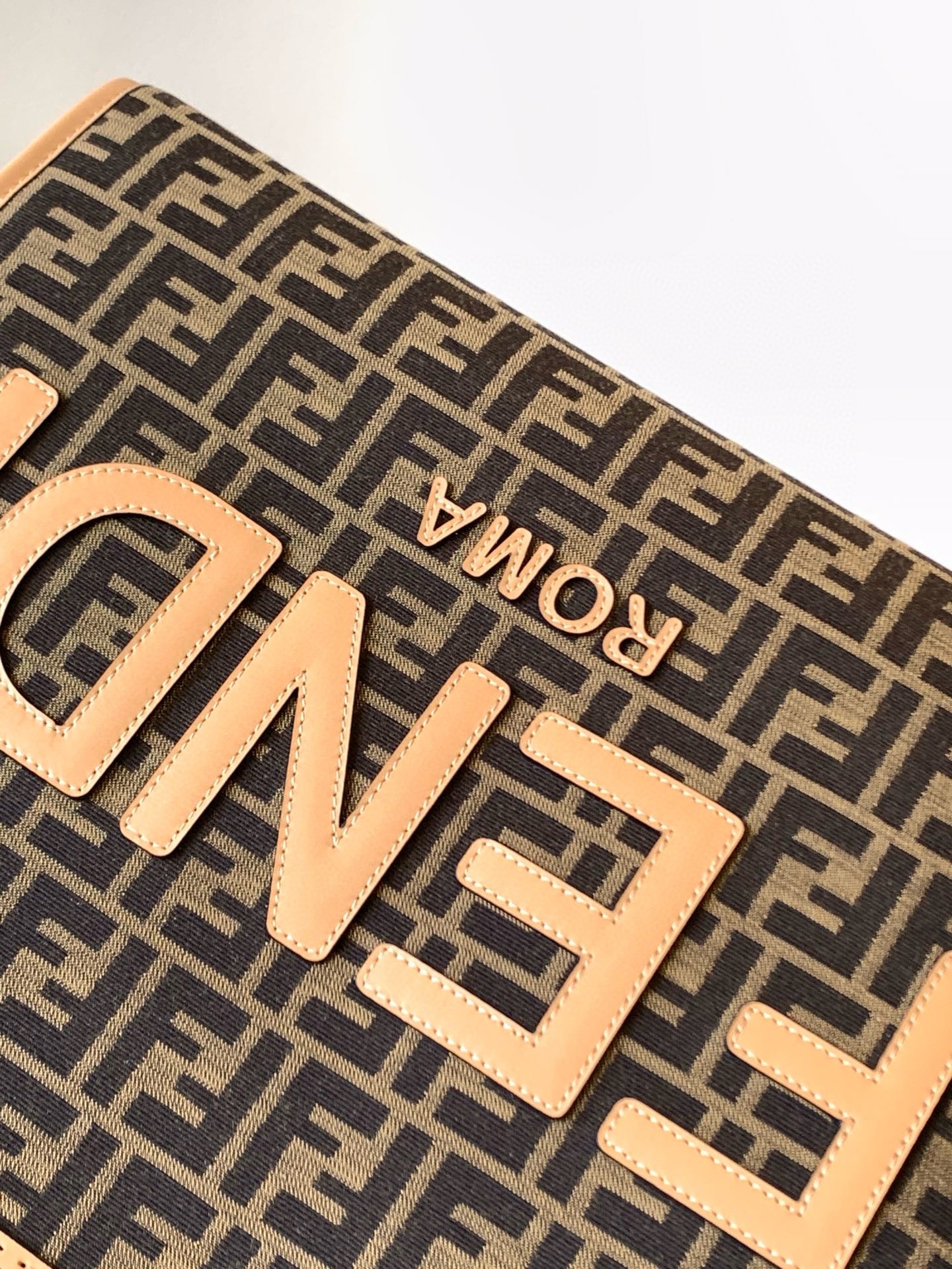 – FENDI ROMA lettering in light brown leather