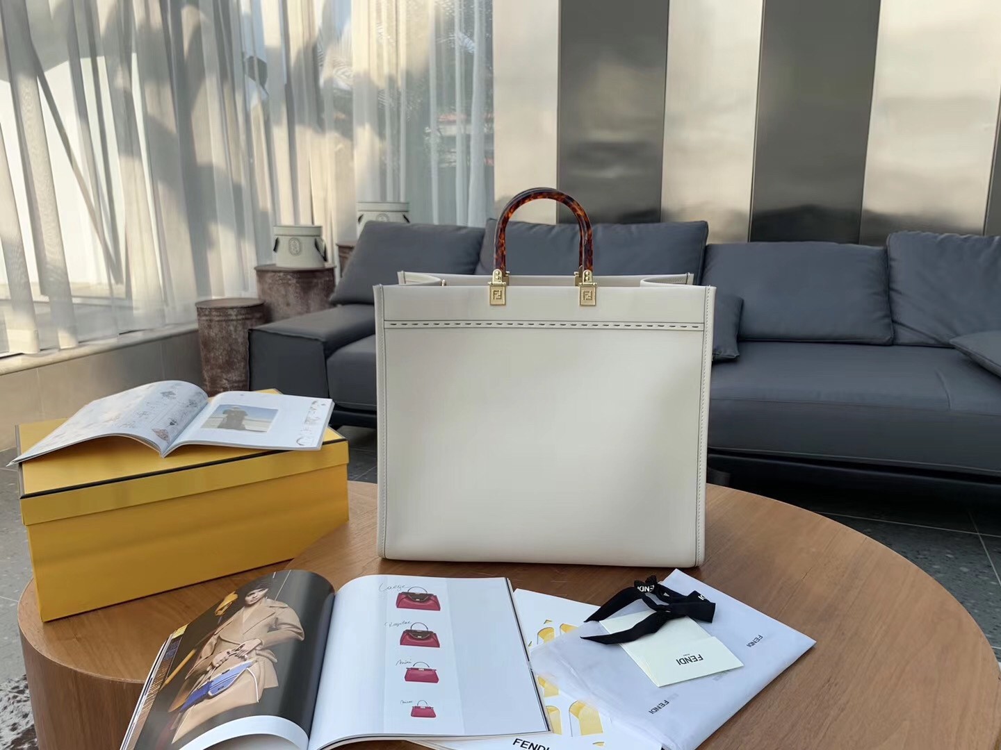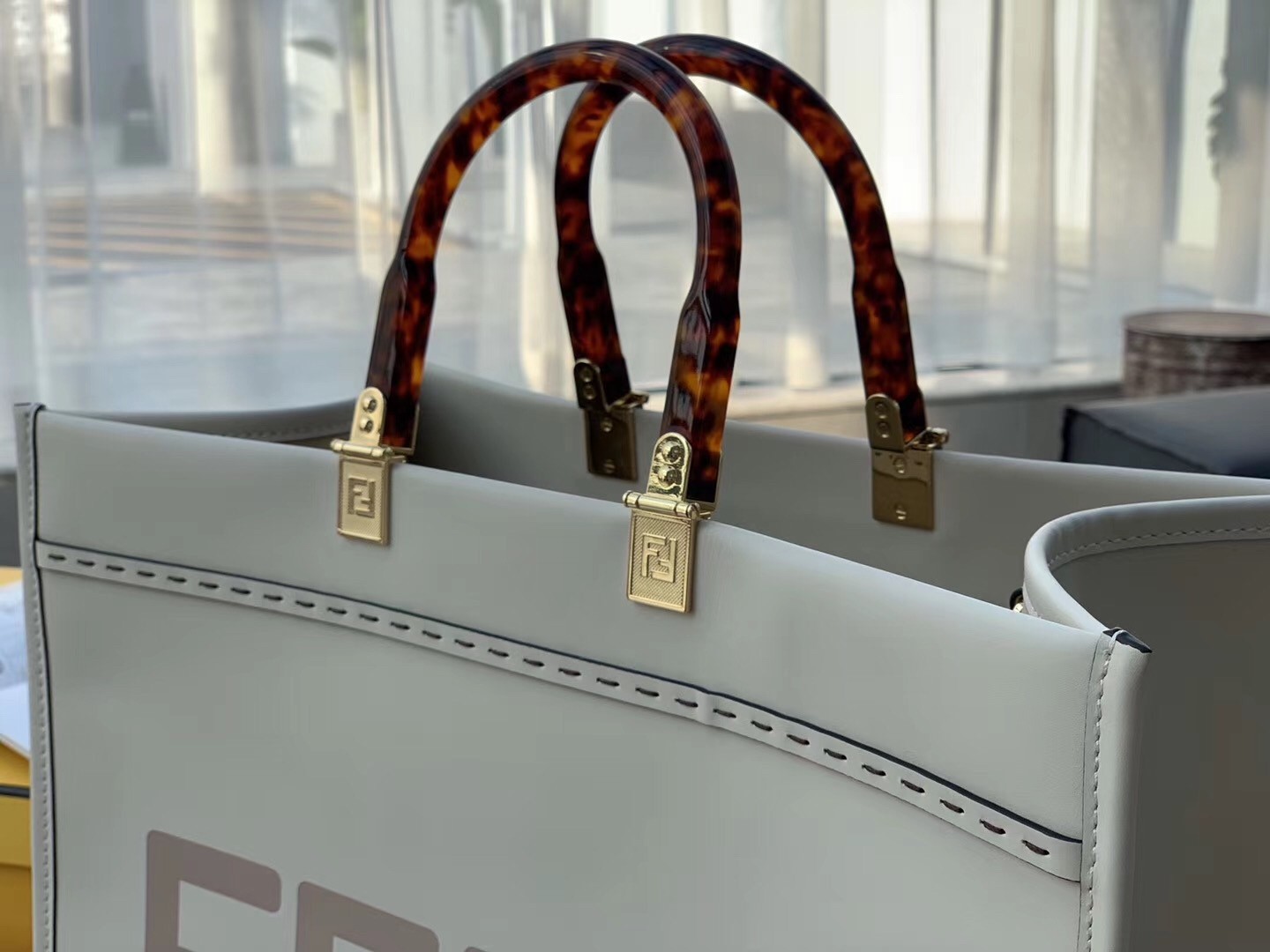 Fendi Sunshine Shopper Bag In White Calfskin