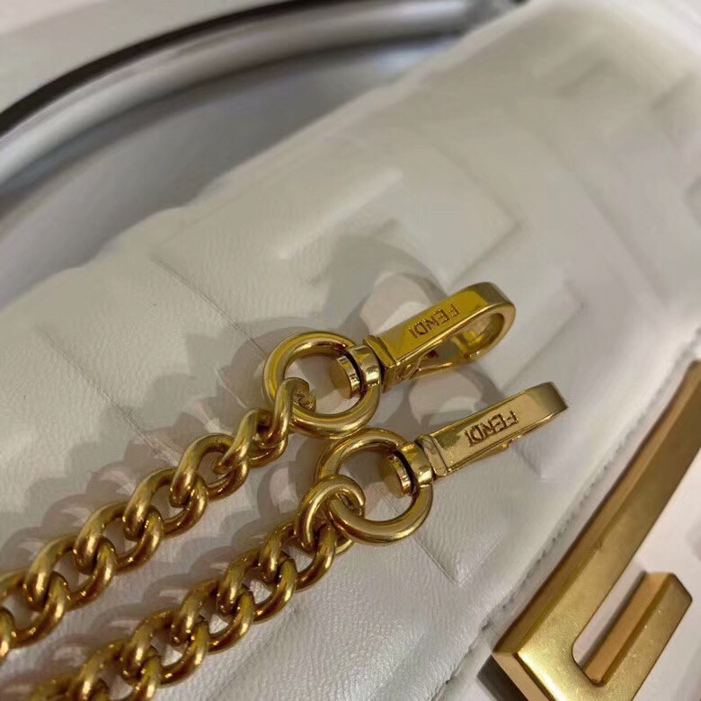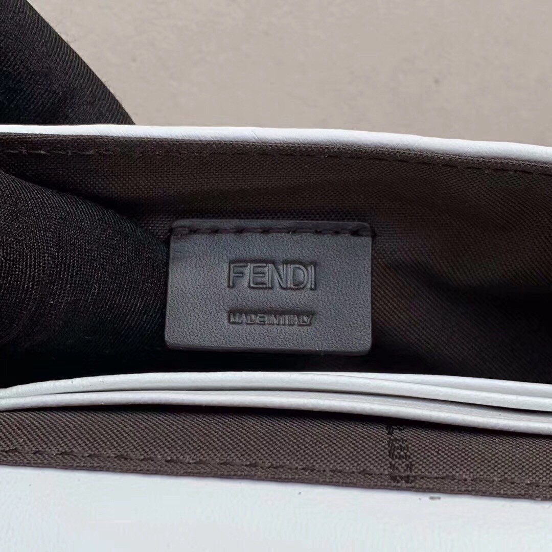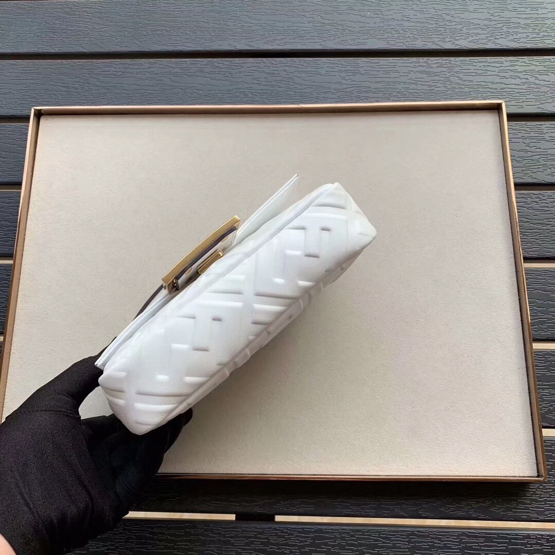 Fendi White FF Motif Mini Baguette Bag