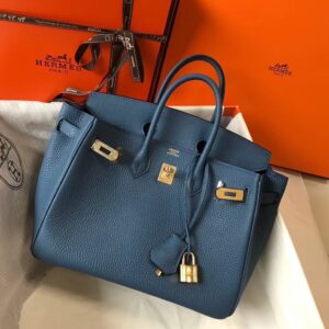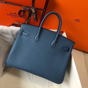 Hermes Birkin 25cm Bag In Blue Agate Clemence Leather