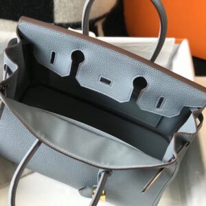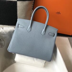 Hermes Birkin 30cm Bag In Blue Lin Clemence Leather