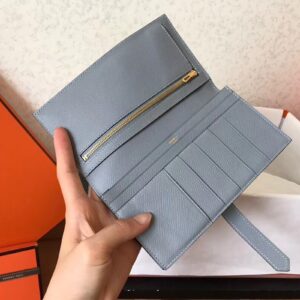Hermes Blue Lin Epsom Bearn Gusset Wallet