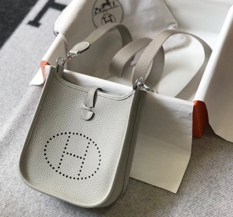 Hermes Evelyne III TPM Mini Bag In Pearl Grey Clemence Leather