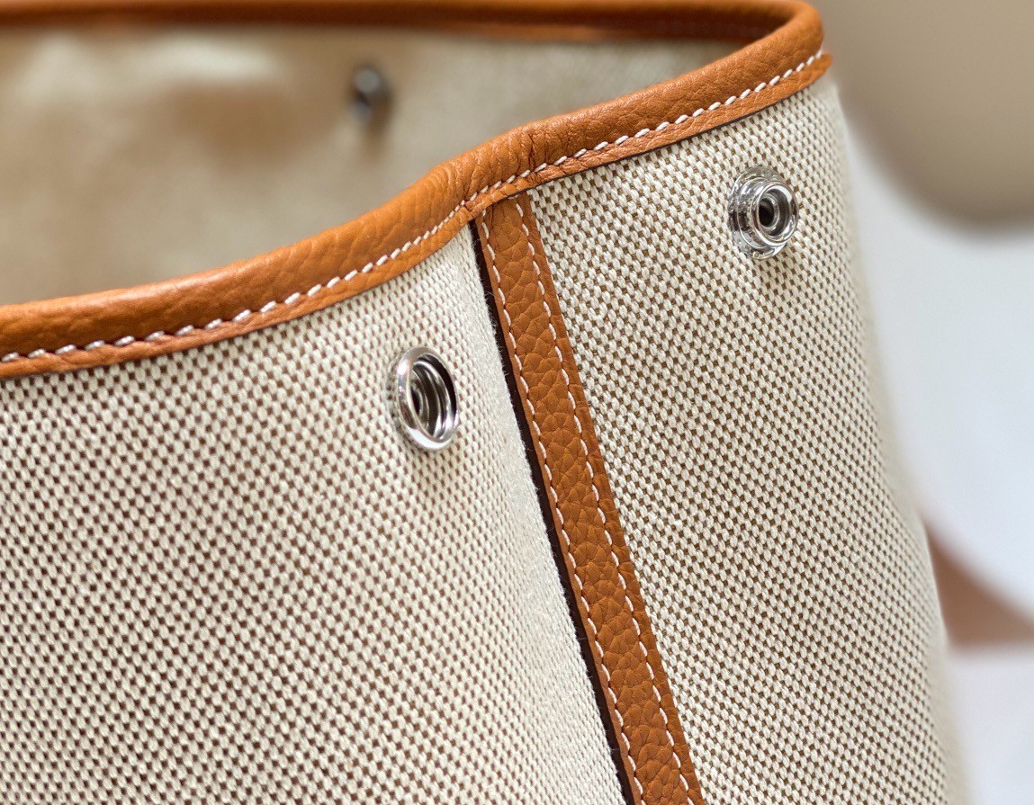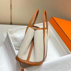 Hermes Garden Party 30cm Bag in Toile and Gold Leather