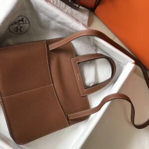 Hermes Halzan 31cm Bag In Gold Clemence Leather