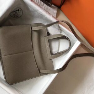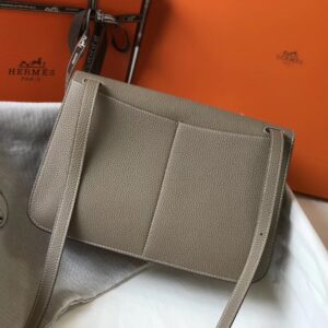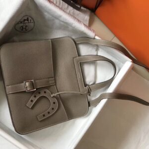 Hermes Halzan 31cm Bag In Grey Clemence Leather