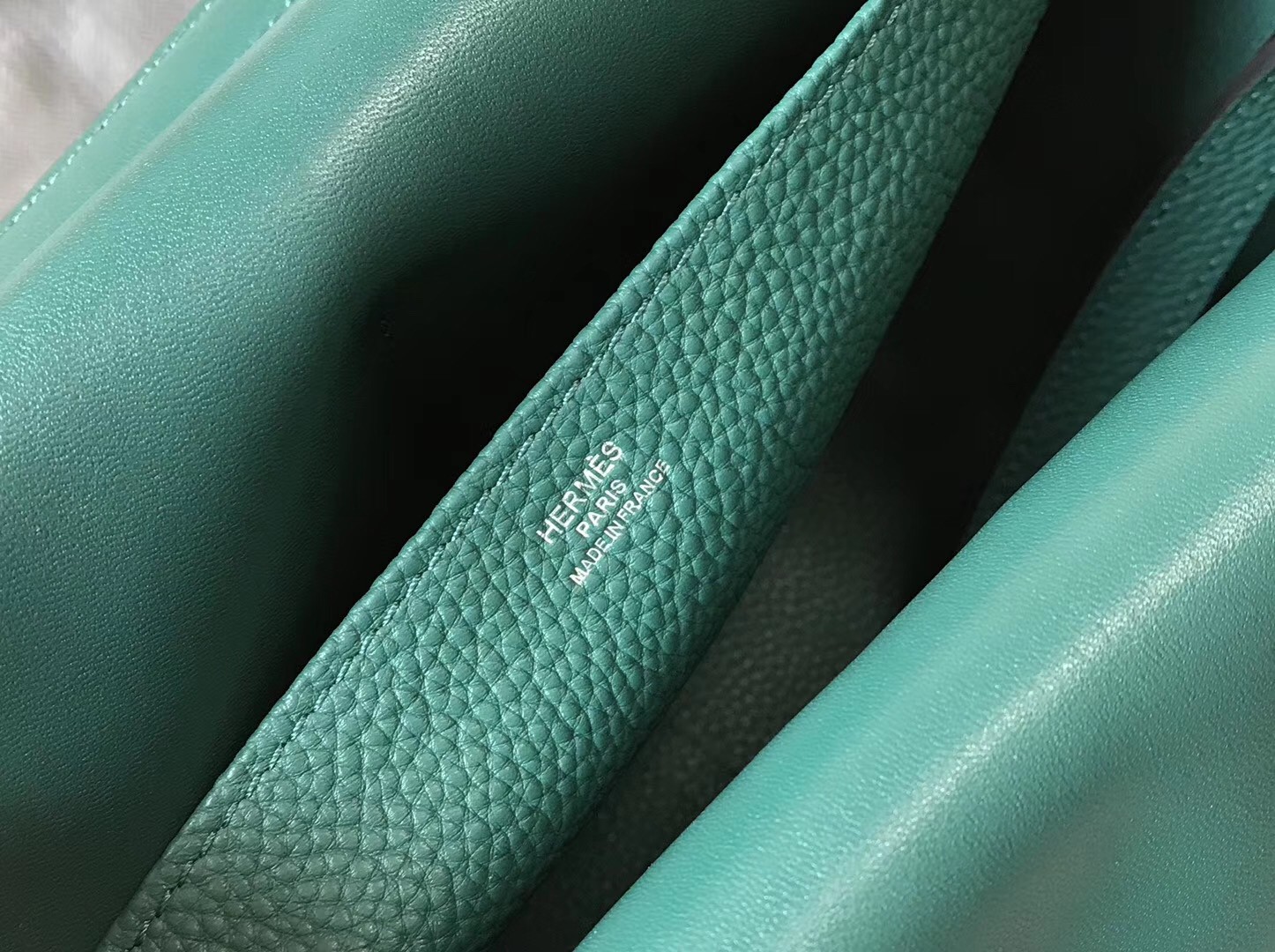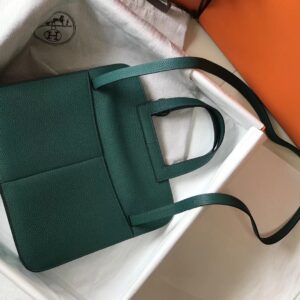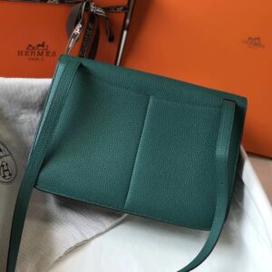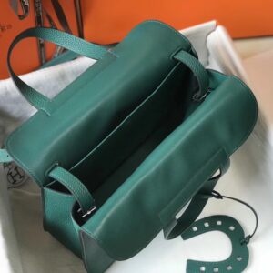 Hermes Halzan 31cm Bag In Malachite Clemence Leather
