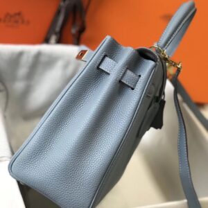 Hermes Kelly 28cm Retourne Bag In Blue Lin Clemence Leather