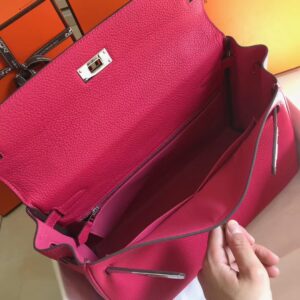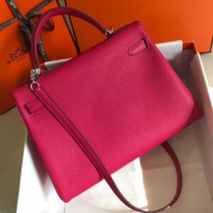 Hermes Kelly 32cm Retourne Bag In Rose Red Clemence Leather