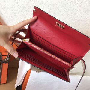 Hermes Kelly Classic Long Wallet In Red Epsom Leather