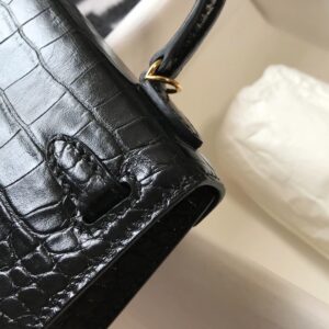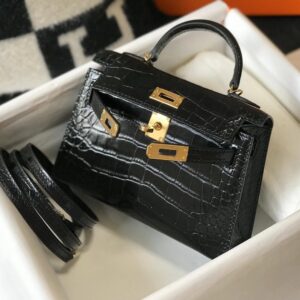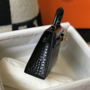 Hermes Kelly Mini II Bag In Black Embossed Crocodile Leather
