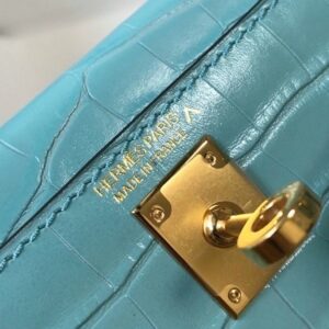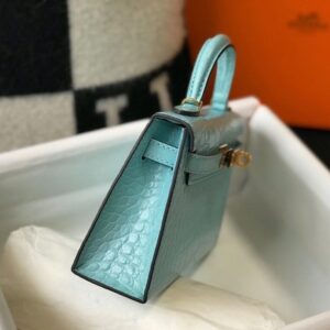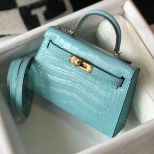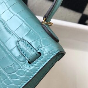 Hermes Kelly Mini II Bag In Blue Atoll Embossed Crocodile Leather