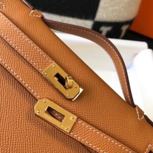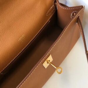 Hermes Kelly Pochette Bag In Gold Epsom Leather