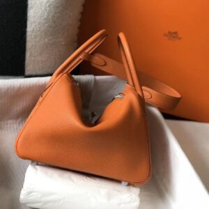 Hermes Lindy 26cm Bag In Orange Clemence With PHW