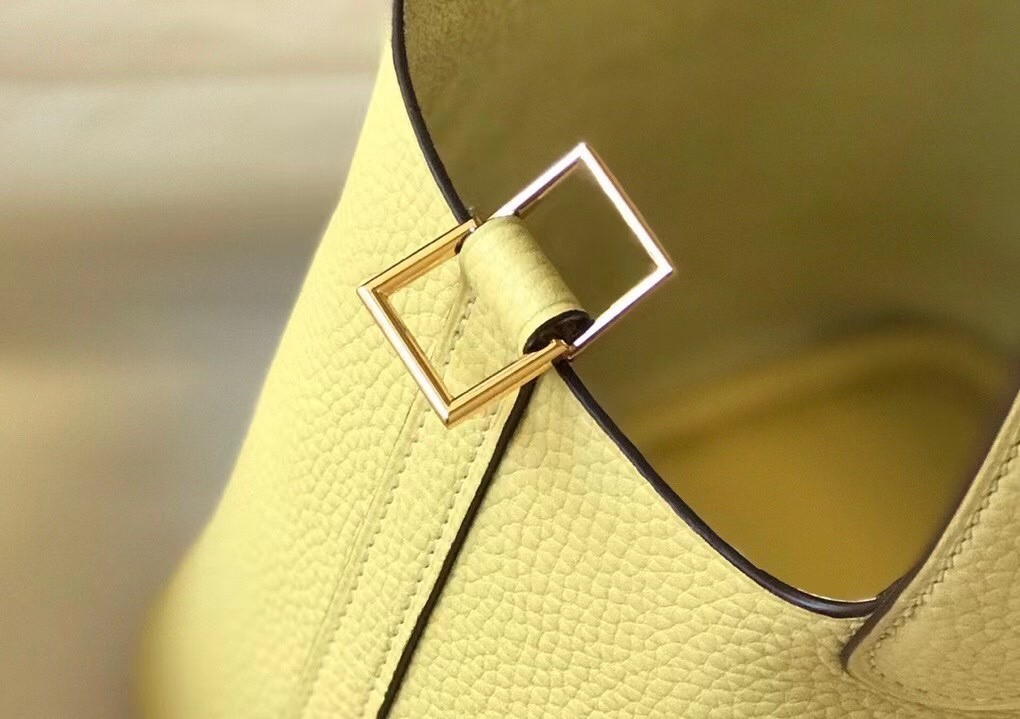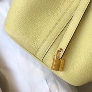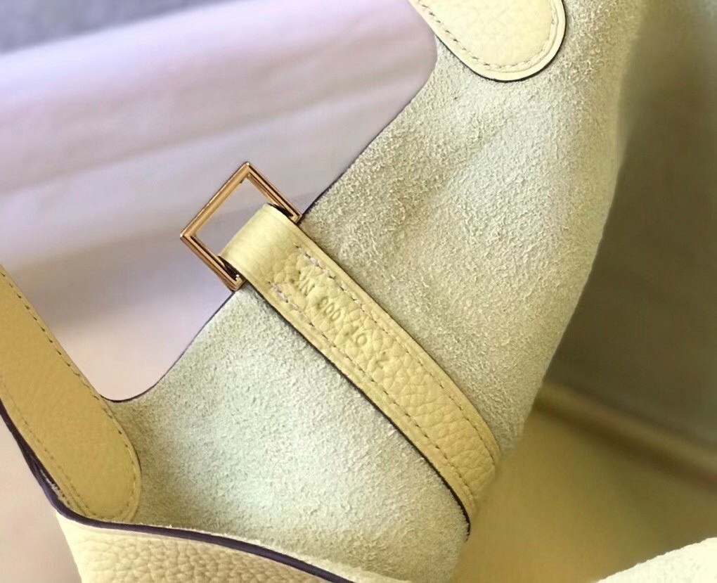 Hermes Picotin Lock 22 Bag In Jaune Poussin Clemence Leather
