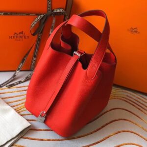 Hermes Picotin Lock 22 Bag In Red Clemence Leather